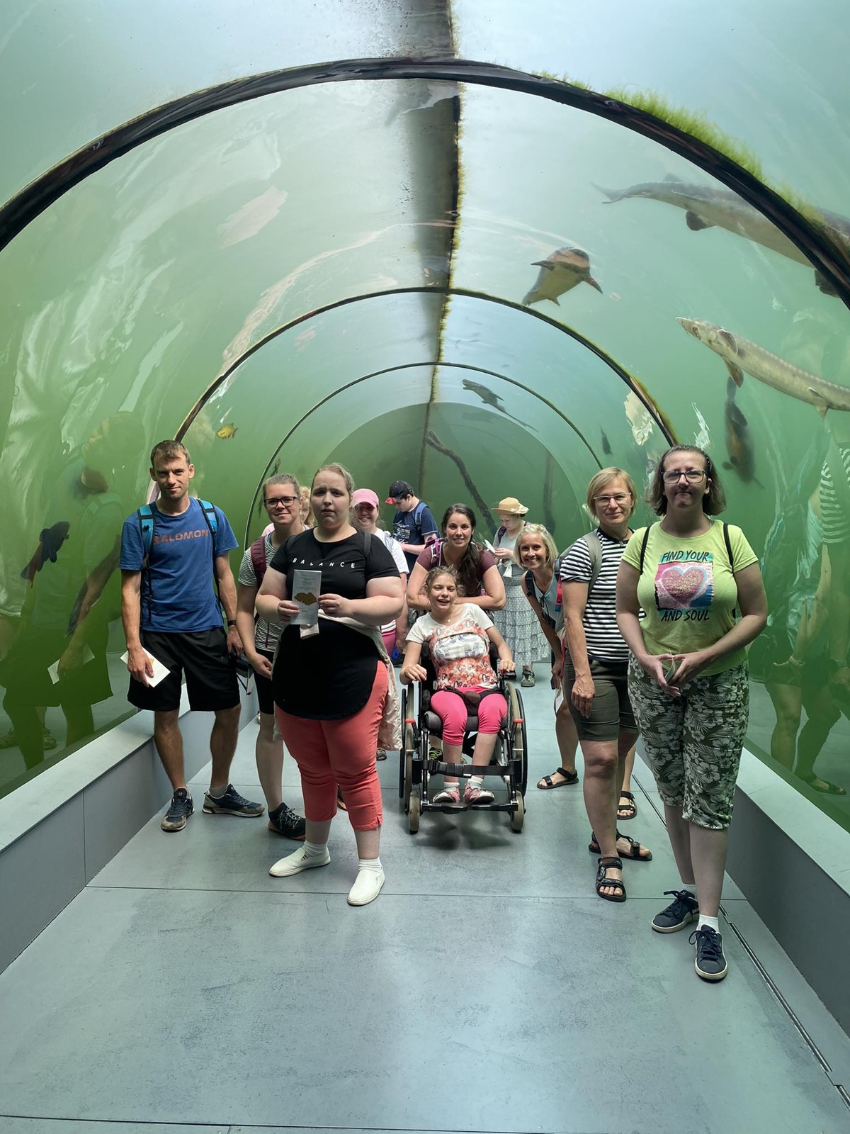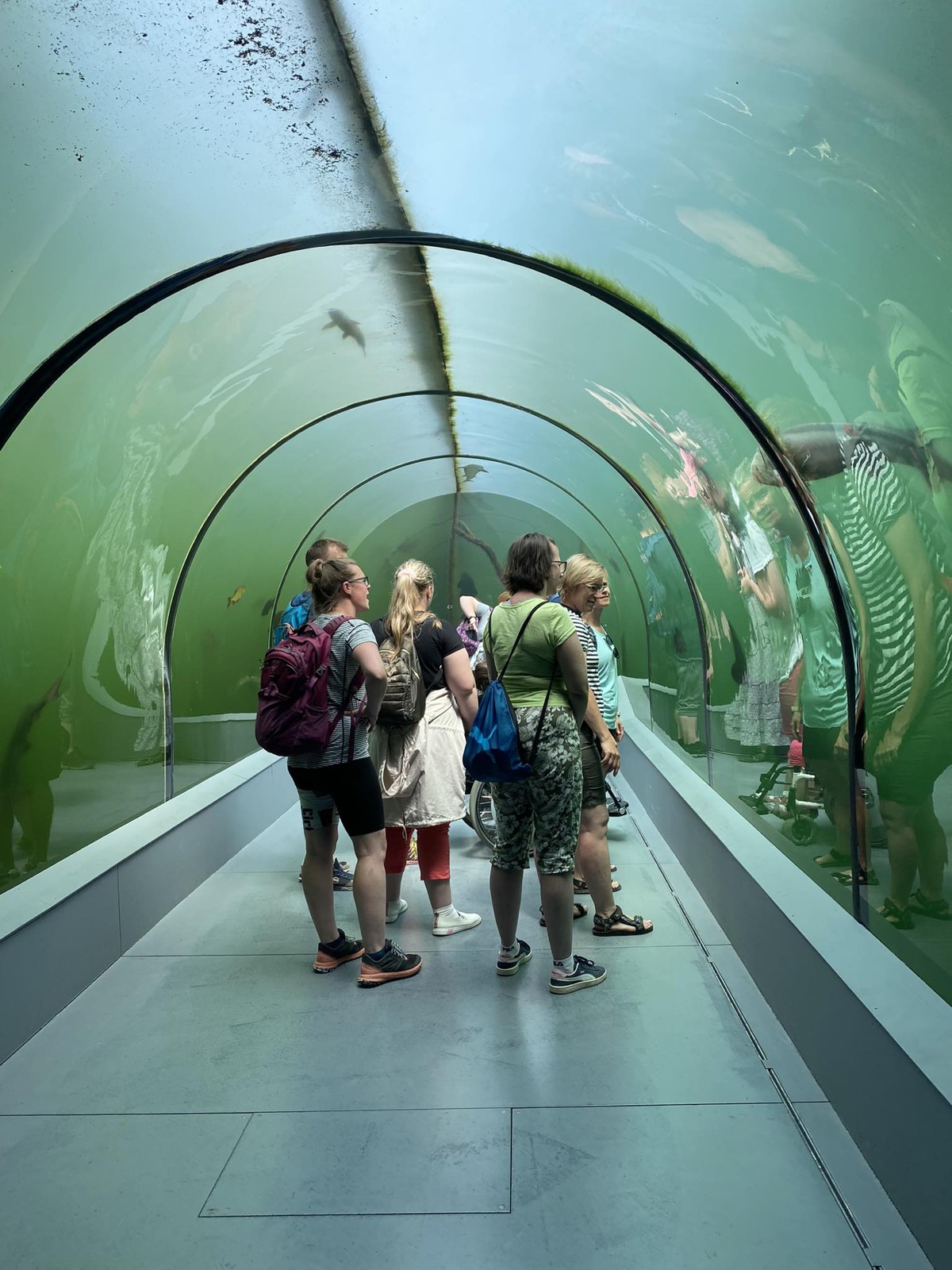 V těsné blízkosti se nacházela expozice sladkovodních ryb Živá voda, kde jsme se seznámili s živočichy i rostlinami řeky Moravy. Skrze prosklený tunel, ve kterém má člověk možnost být součástí vodní říše, jsme se mohli seznámit s životem ve vodě.