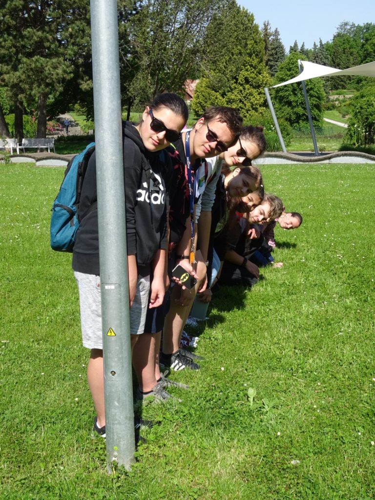 Jednotlivé třídy se jako skupinky postupně vydaly do parku k Přírodovědecké fakultě UP, kde se učily poznávat stromy, horniny a čas na slunečních hodinách. Následovala cesta do Rozária, kde si žáci užívali spousty legrace při plnění dalšího úkolu – focení netradiční třídní fotky. Vyšlo z toho mnoho povedených a vtipných fotek, na které se jistě rádi za pár let společně podíváme a zavzpomínáme. V botanickém parku si žáci také prohlédli velké množství různých květin a postupně se vydali po trase dál přes Bezručovy sady do historického centra na Dolní náměstí. Zde se dozvěděli něco o minulosti a historických památkách města. Poslední zastávkou byly Smetanovy sady, kde už se žáci proměnili v hledače „pokladů“ – zajímavých věcí, které takový park ukrývá. Navíc děti po trase nacházely i malované putovní kamínky.