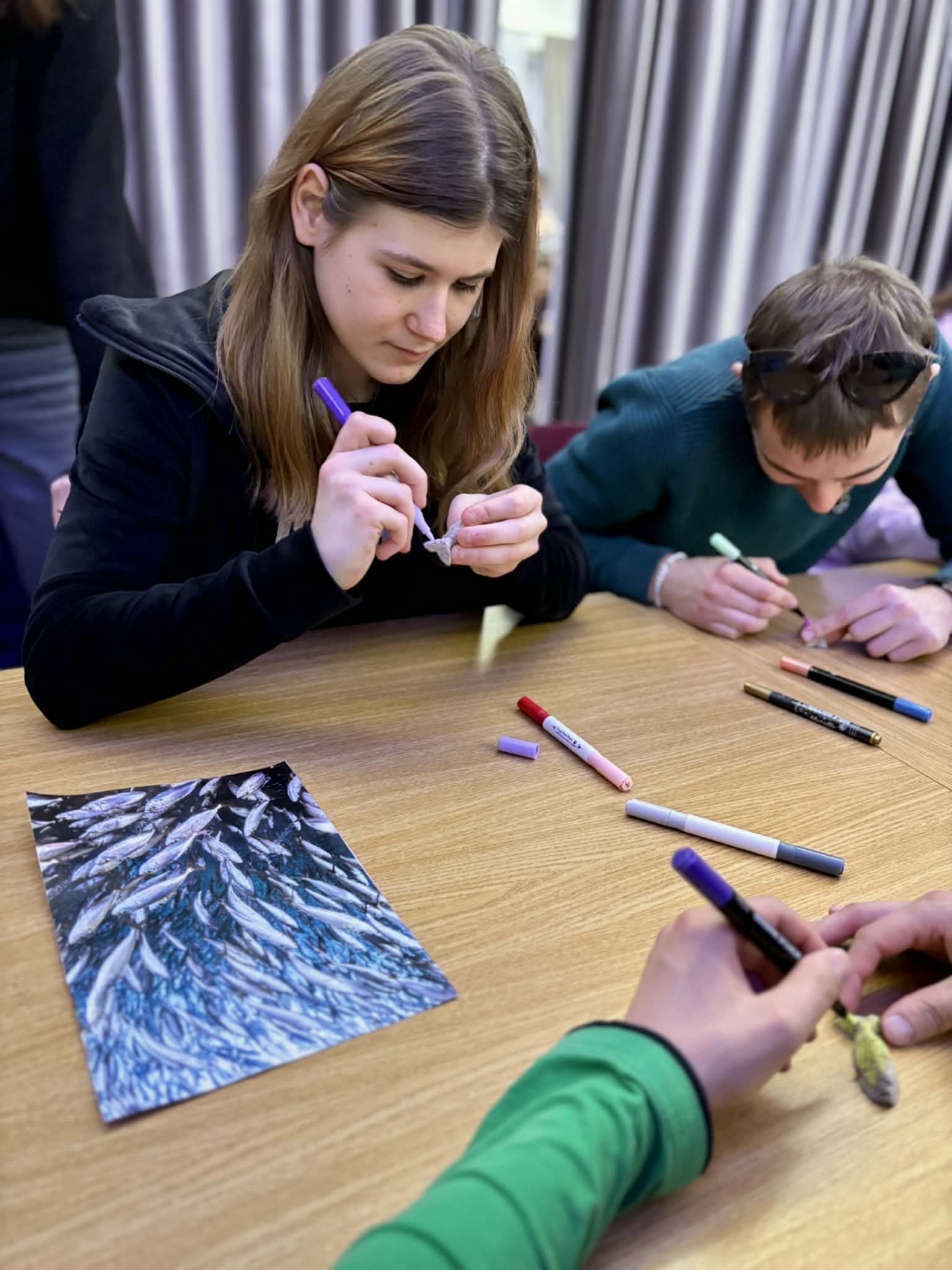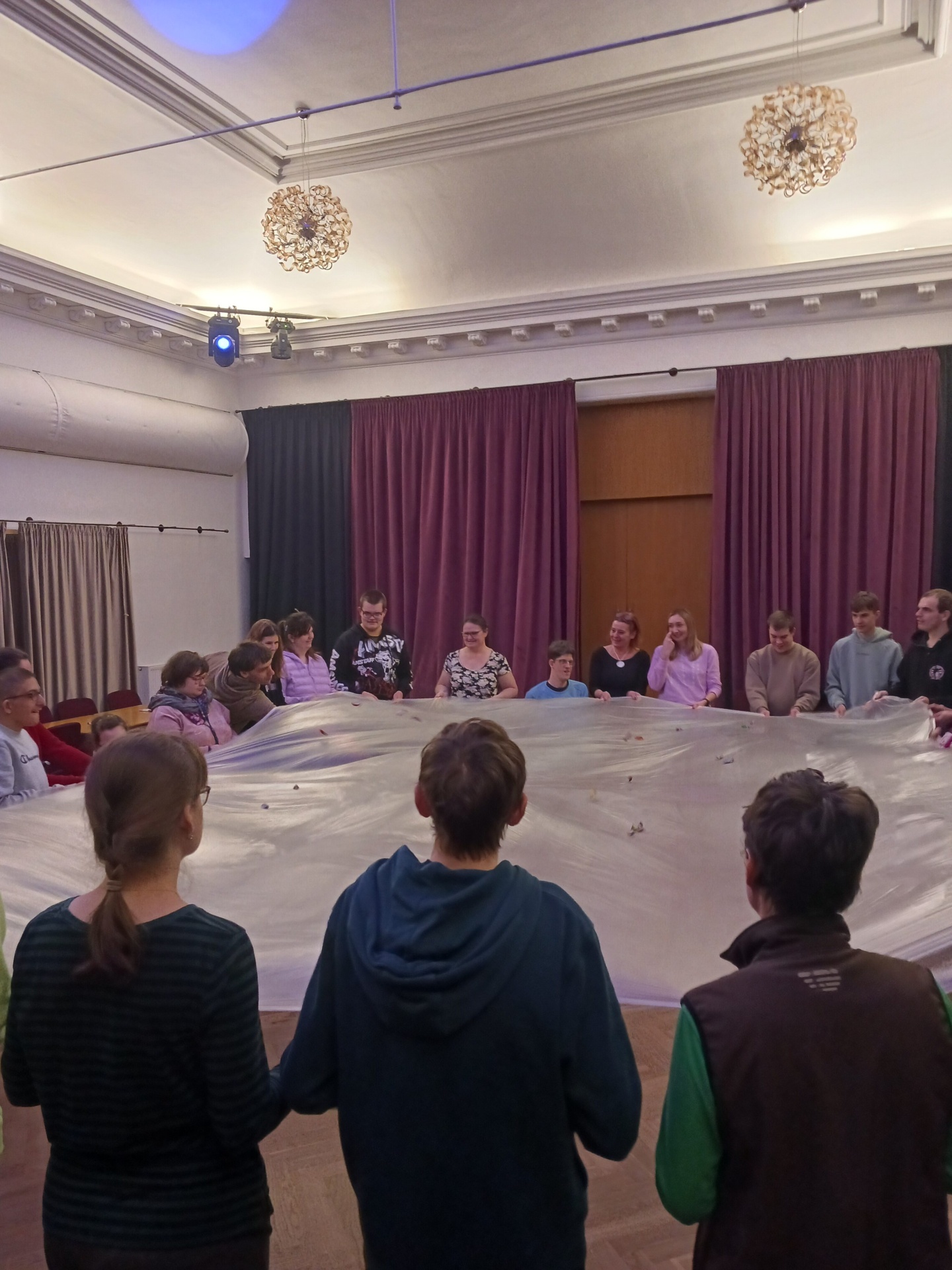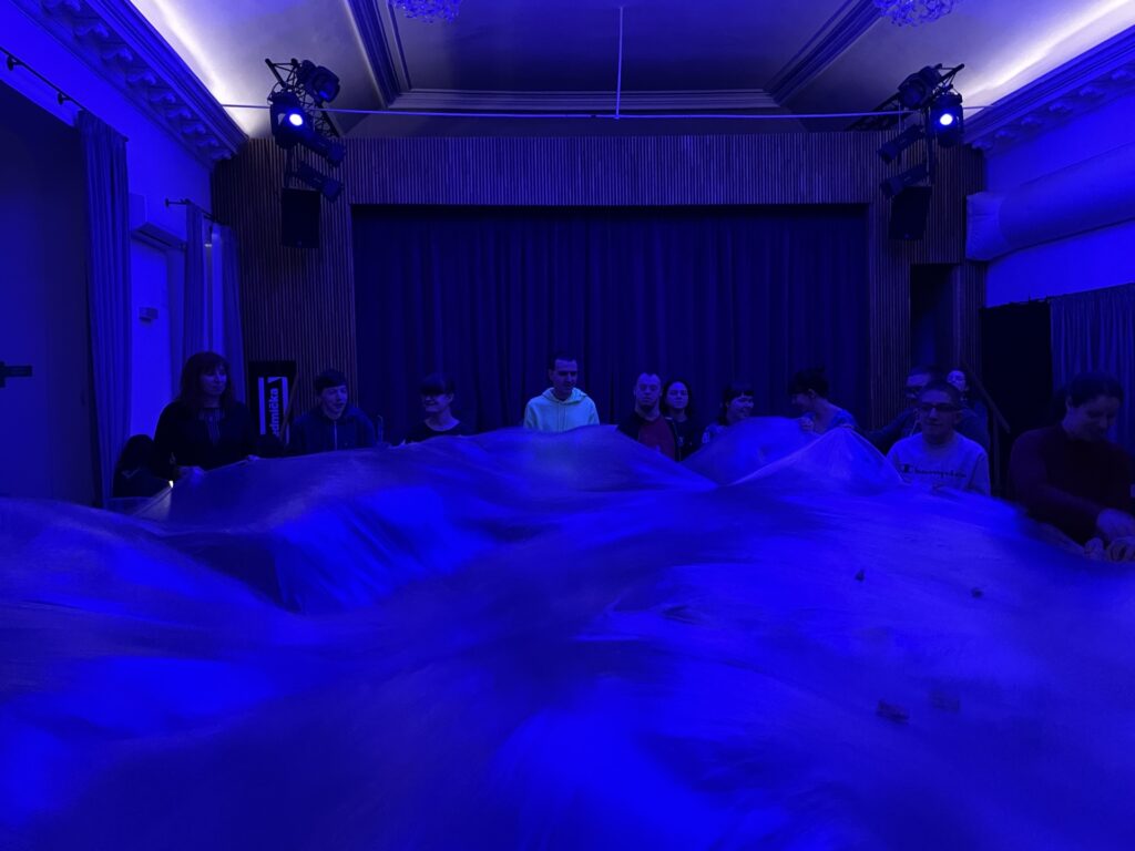 Největší nadšení sklidila aktivita s velkou plachtou, která symbolizovala mořskou hladinu. Žáci s ní společně pohybovali a na její povrch umístili vlastnoručně namalované rybičky. Celkový dojem ještě umocňovalo barevné osvětlení, které prostor proměnilo v kouzelný podmořský svět.