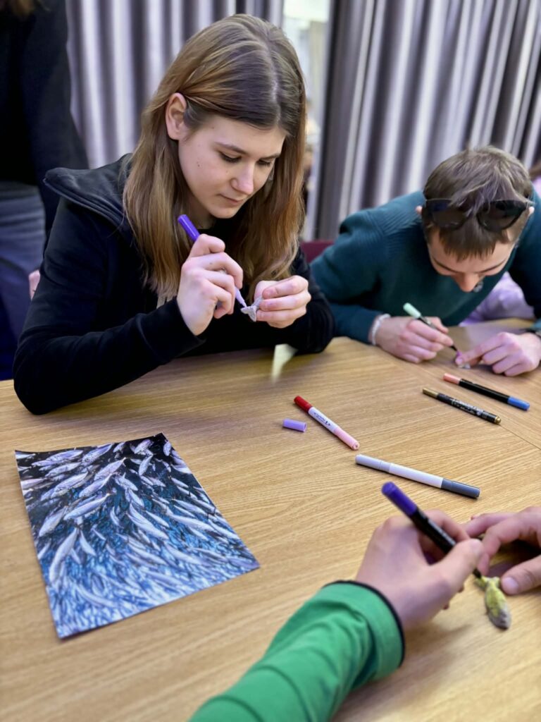 Během workshopu se žáci aktivně pohybovali a ztvárňovali různé mořské živočichy. Nechyběla ani výtvarná část, při níž si žáci dle své fantazie vybarvovali figurky rybiček z papírové hmoty. Následně vyráběli loutky inspirované podmořským světem, se kterými si zahráli stínové divadlo. Celý program byl doplněn hudbou, do jejíhož rytmu se účastníci pohybovali a vytvářeli tak jedinečnou atmosféru.