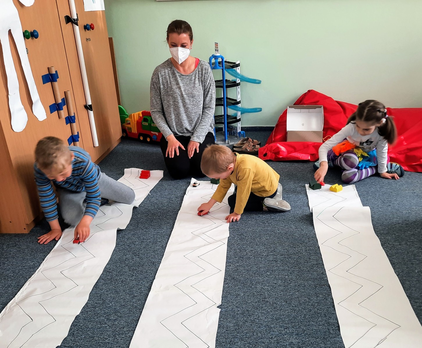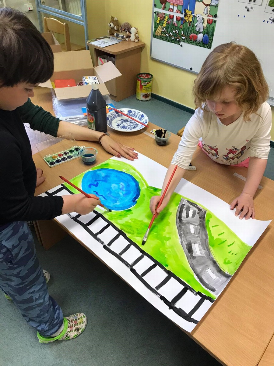 Do konce dubna jsme se snažili dohnat všechny resty z období, kdy byla školka zavřená a tradičním tématem tohoto měsíce pak byla doprava.