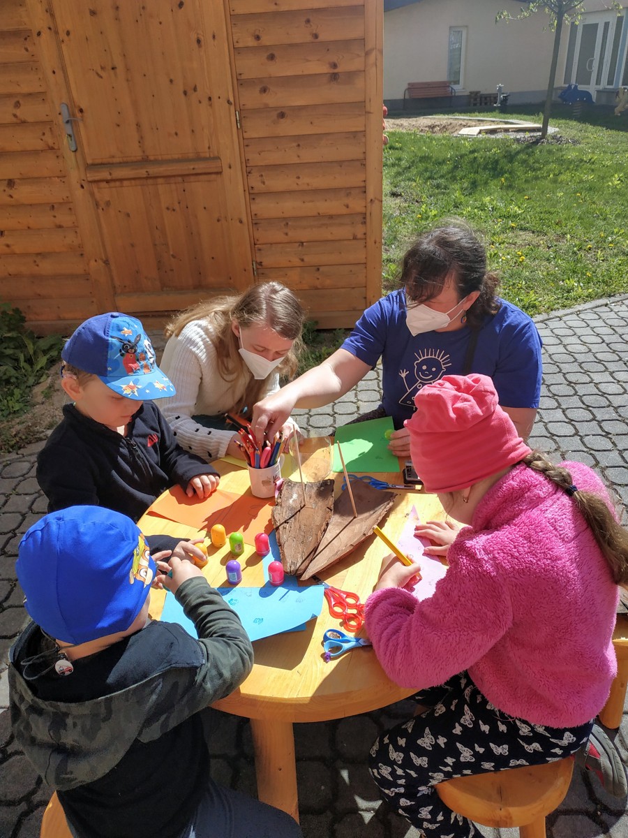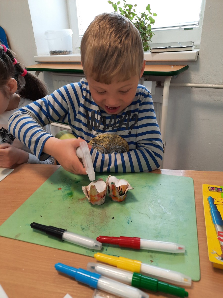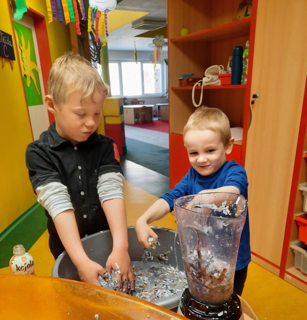 Takže jsme vyráběli lodičky, které jsme pak pouštěli v parku na rybníce, proháněli jsme se na kolech a koloběžkách na školní zahradě, Ovečky se pokoušely o výrobu ručního papíru a nutno říci, že se jim to krásně povedlo. Mašinky si vyrobily svoji vlastní knihu a všichni pak pečovali o záhonky, seli semínka hrášku a ředkviček.