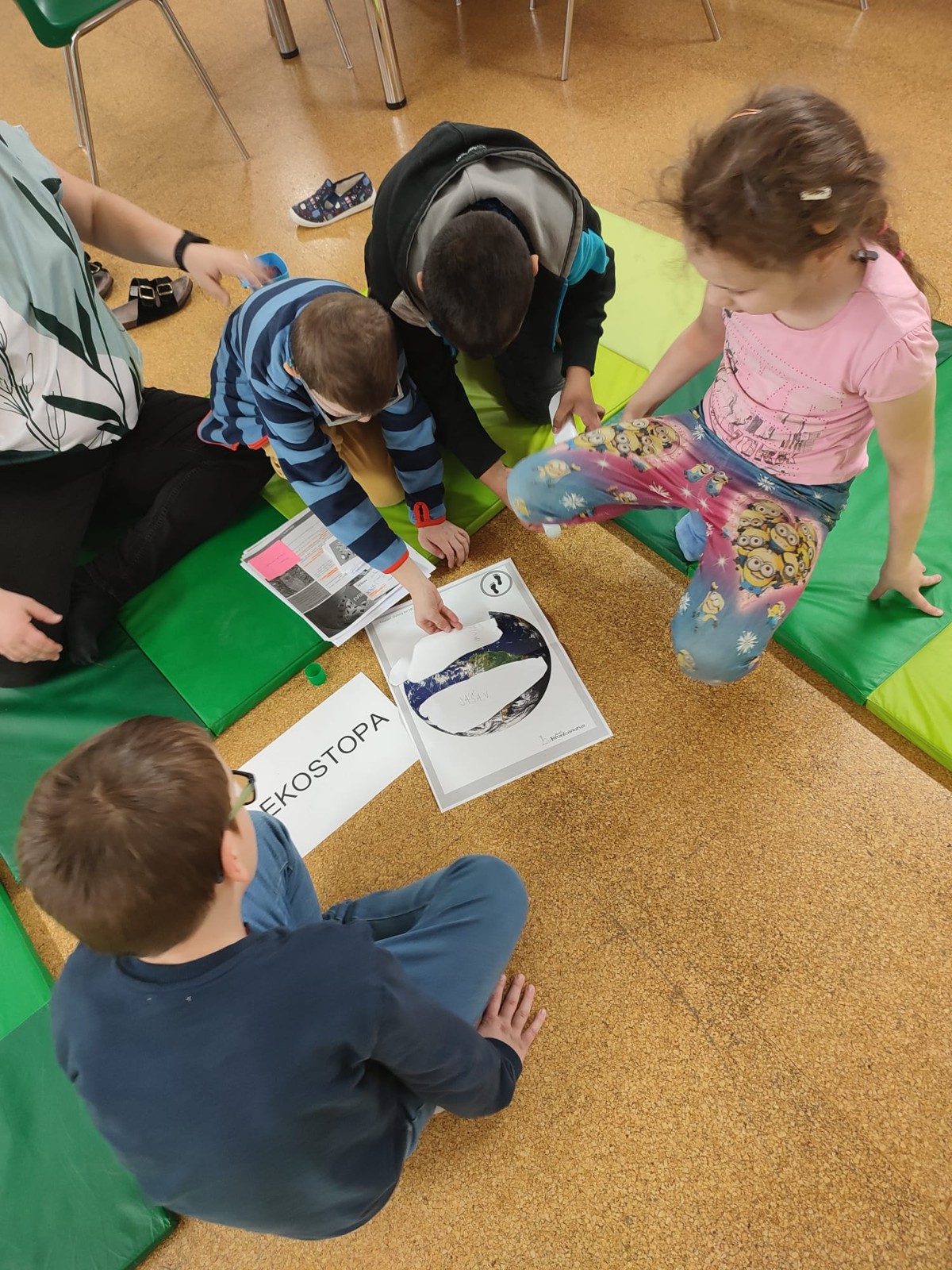 Naučili a dozvěděli jsme se mnoho nových věcí. V prvním tématu – Potraviny – jsme zaplnili naši planetu stopami, povídali jsme si o lokálních potravinách a zahráli si hru „Pašeráci“, která nás moc bavila. V druhém tématu – Osobní spotřeba – jsme řešili pojem „minimalismus“. Tvořili jsme věci z materiálů okolo nás a sbírali odpadky. Ve třetím tématu – Energie – jsme se naučili druhy elektráren, zahráli si hru „elektrika“, pozorovali hada, který se hýbal nad topením a seznámili jsme se s počítačovým programem „Joulinka“. V posledním čtvrtém tématu – Doprava – jsme si užili šipkovanou, která nás dovedla do parku na zmrzlinu. Také jsme pozorovali svět pomocí barevných sklíček, které jsme si vyrobili. Zvládli jsme vyplnit jarního lovce a nejvíc nás bavily hry „jízdenky a medvěd, bomba, povodeň“.