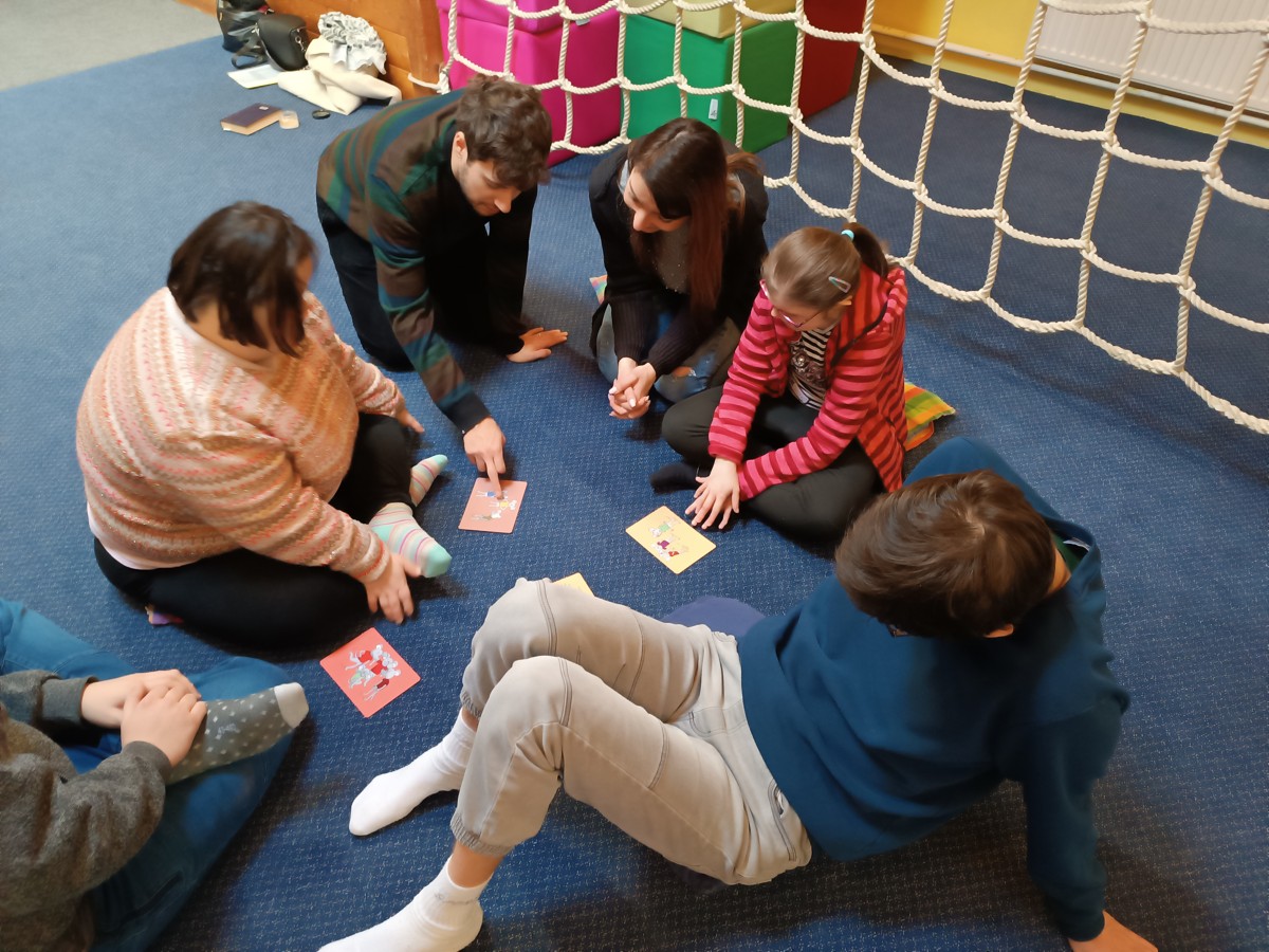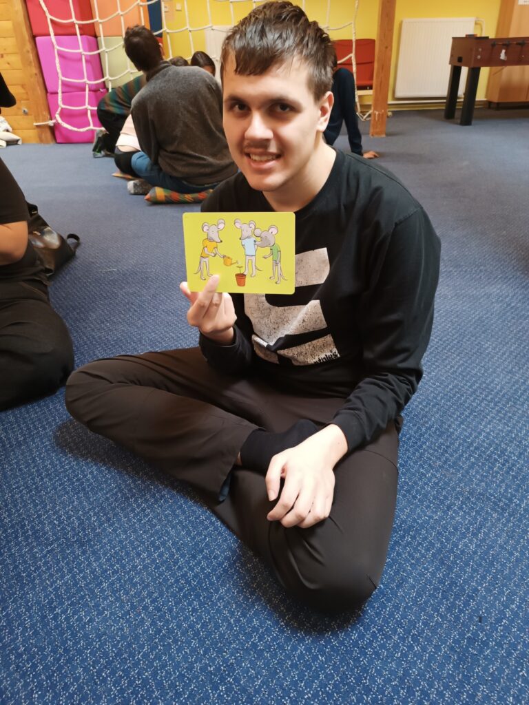 Nejprve měli žáci představit spolužáka, který seděl vedle, říct o něm pár slov, jaký je, co má rád a v čem je dobrý. To stejné pak řekli o sobě. Podle obrázků, na kterých byly myšky v různých situacích, měli vymyslet příběh a následně říct jaká ta situace vlastně byla a jestli oni sami už takovou situaci zažili a jak se v ní cítili. Jako poslední byla relaxační aktivita s barevným padákem a míčky, u které jsme se všichni velmi nasmáli.