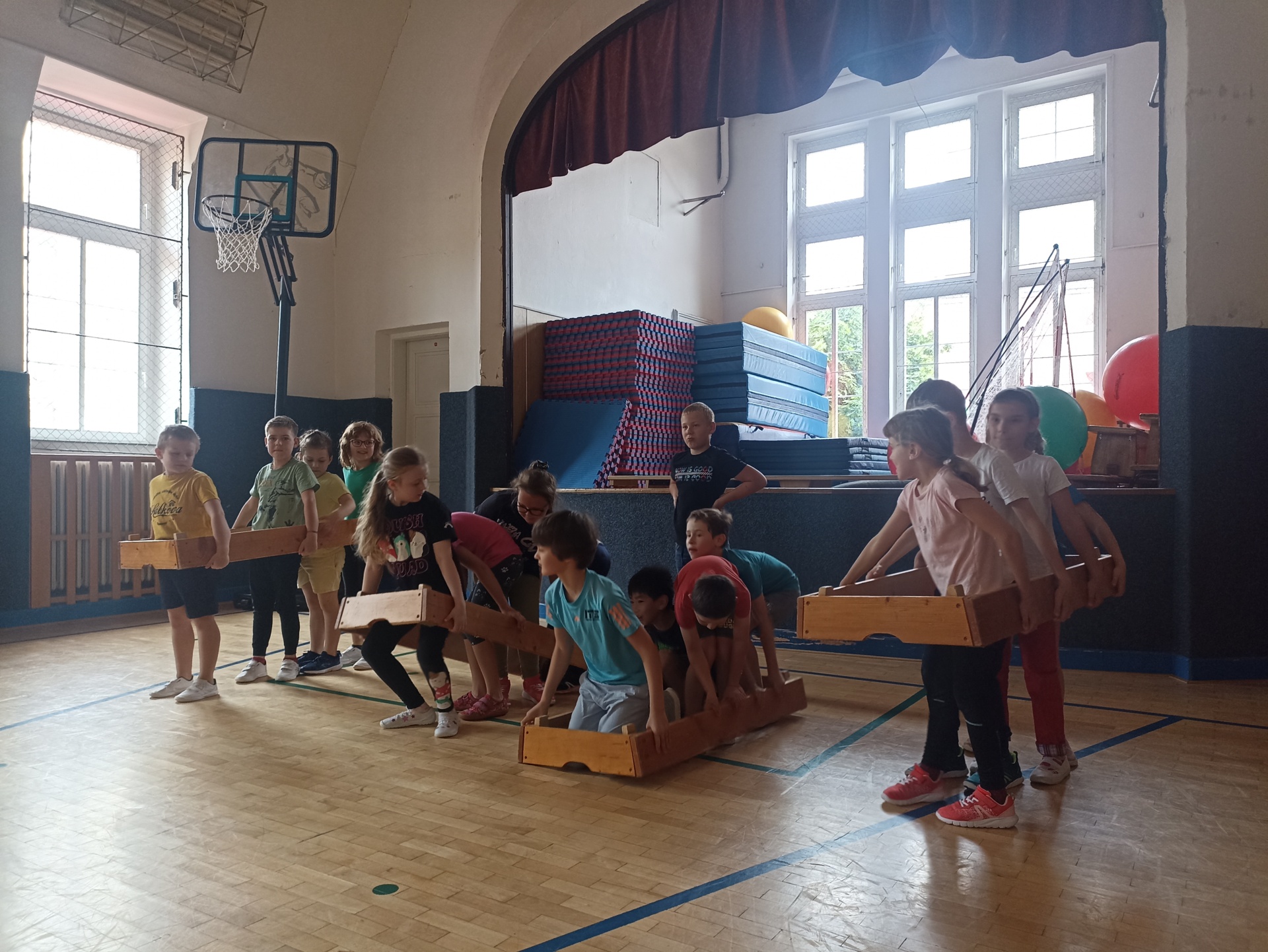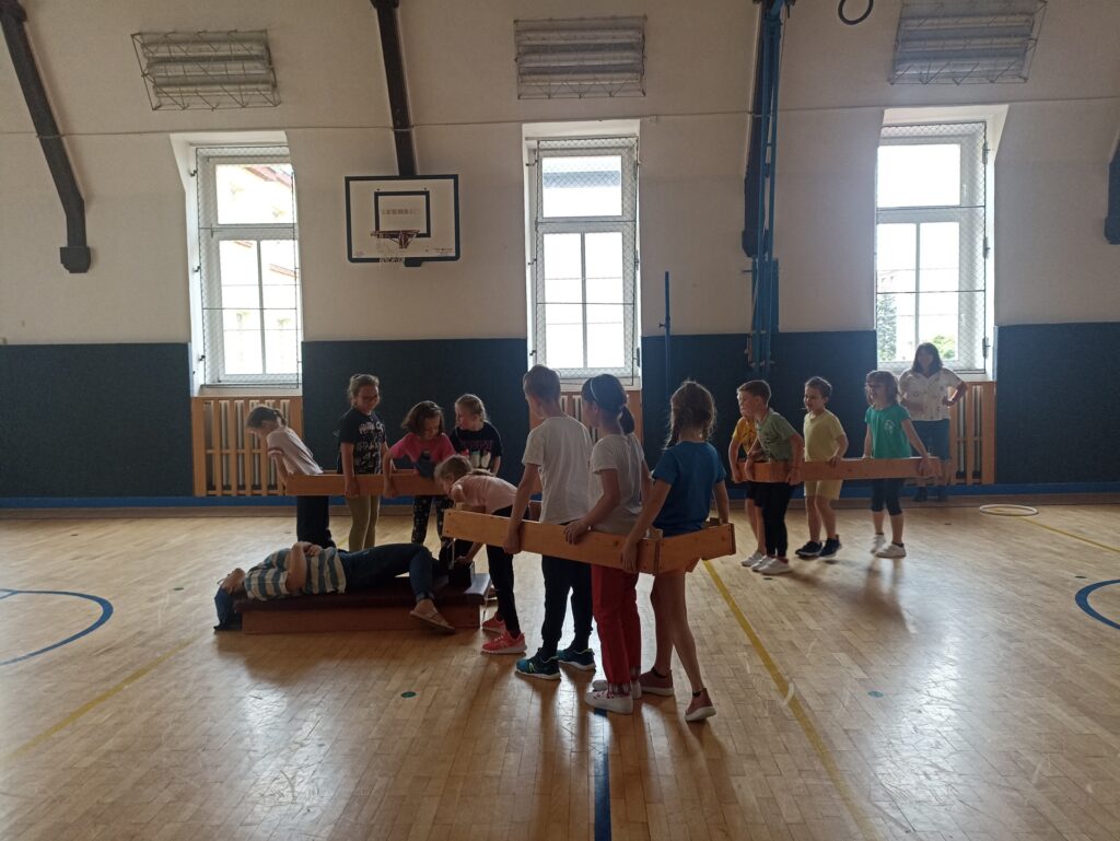 Ve středu 12. června jsme dostali na oplátku pozvání my a tak jsme se vydali na dvouhodinovou návštěvu nedaleké ZŠ Hálkova. Děti už se na své nové „kamarády“ těšily a myslím, že to bylo vzájemné. Přivítaly nás ve své třídě malým olomouckým orlojem, který byl tomu opravdickému na náměstí téměř k nerozeznání podoben. Pak nás provedly školou a všechny prostory nám náležitě okomentovaly. V každé místnosti pro nás měly připravenou nějakou hru nebo zábavnou aktivitu. Nakonec jsme se přesunuli do tělocvičny, kde jsme se najednou ocitli na opuštěném ostrově a začal boj o přežití. Poté, kdy děti splnily několik zábavných úkolů, čekal je závěrečný pirátský lup. Vše se podařilo, ale hlavní bylo, že jsme se u toho všichni společně náramně bavili.