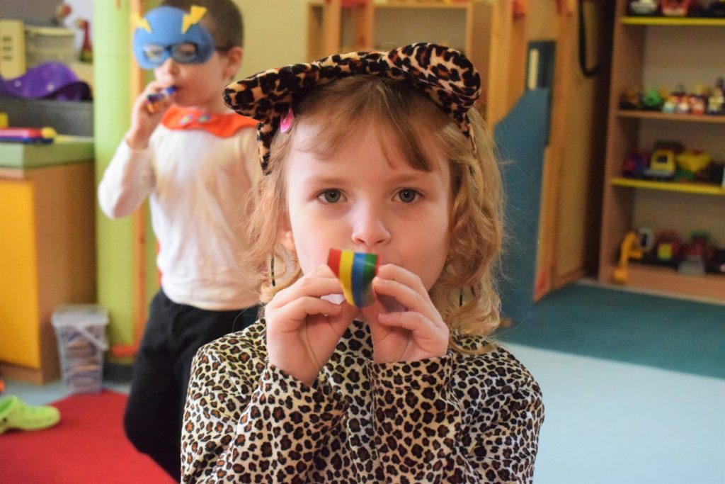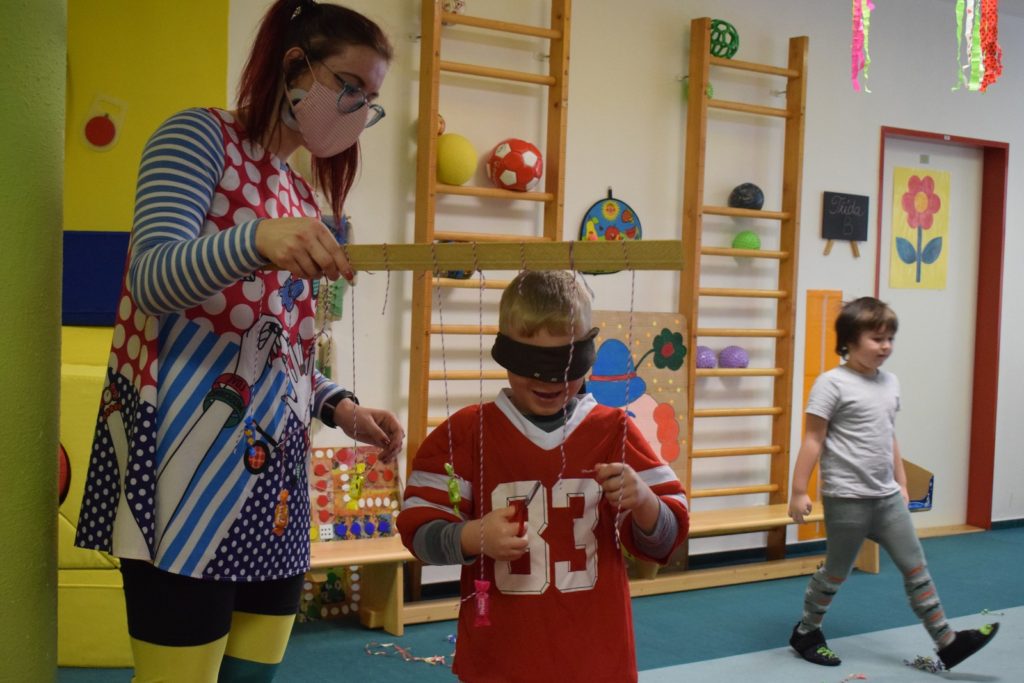 Hned po svačince začal ten pravý karnevalový rej masek. Všichni jsme se rozproudili v rytmu tance, který vzápětí vystřídalo kouzlení s nafukovacími balónky. A potom přišlo na řadu plnění různých úkolů, které všichni bravurně zvládli. Na závěr proběhla velkolepá promenáda masek po zeleném koberci.