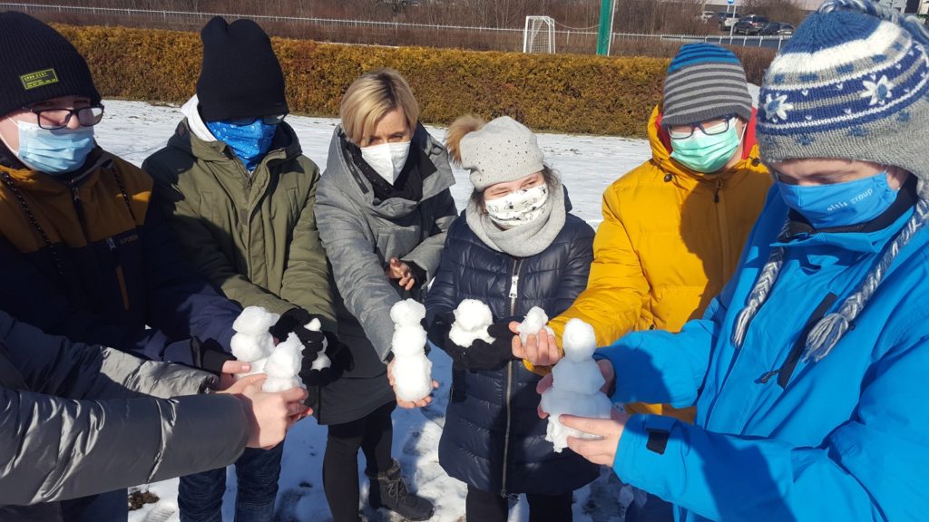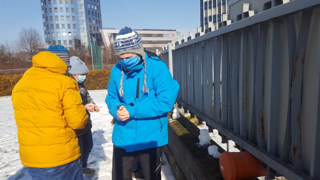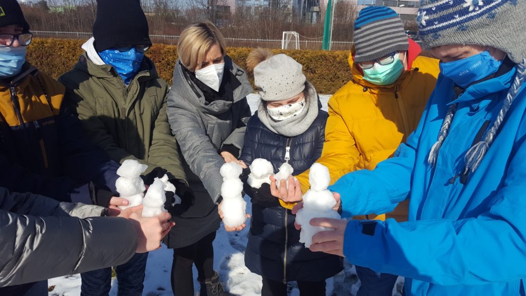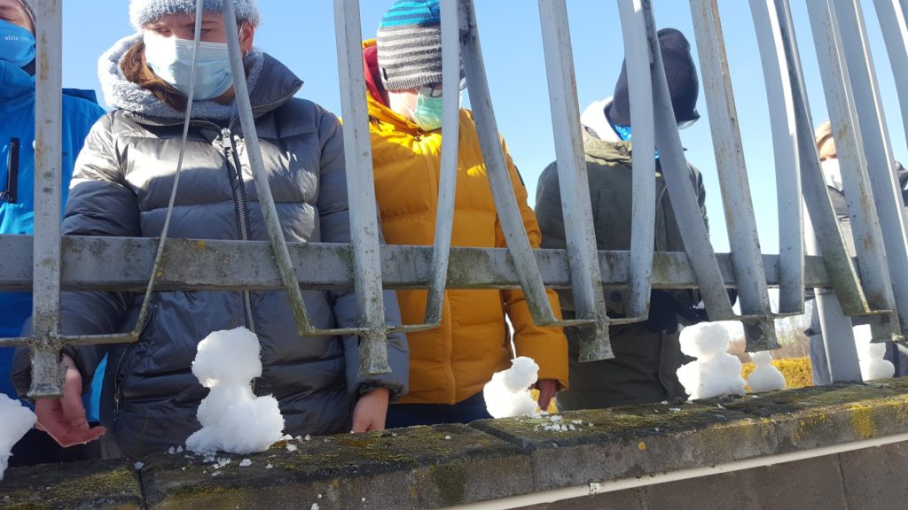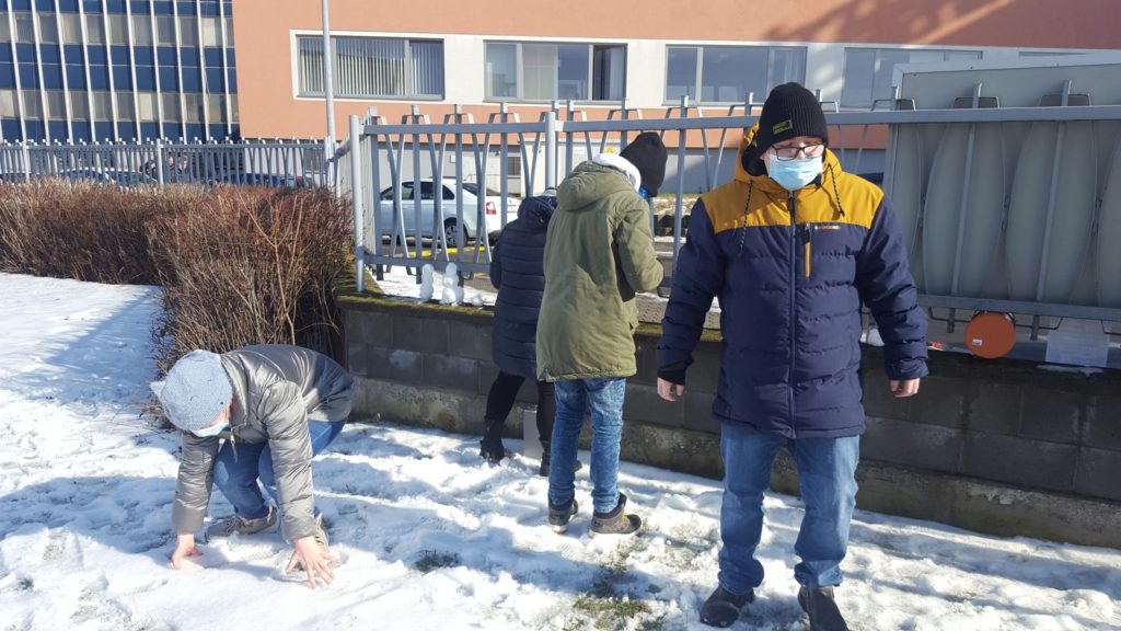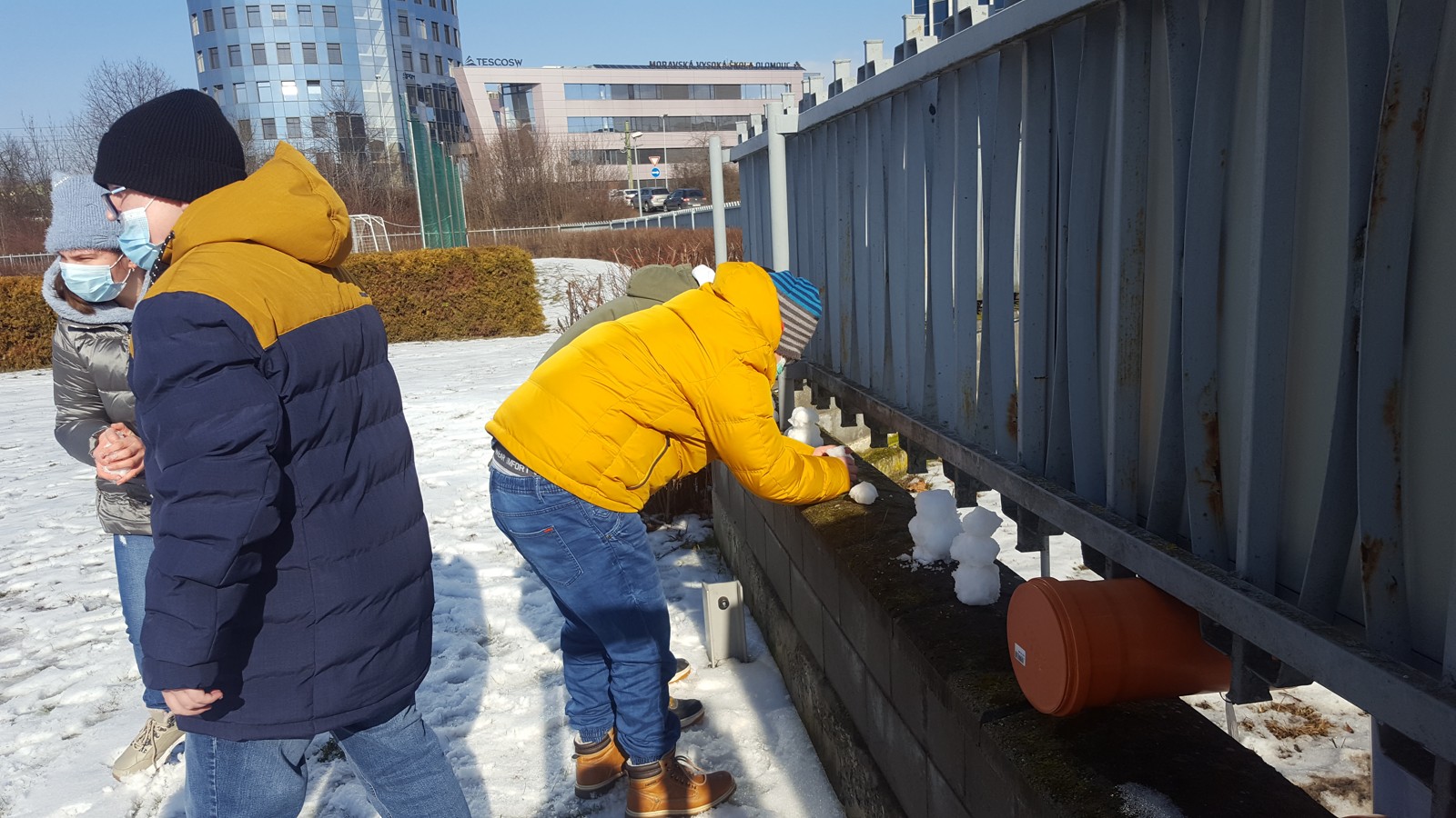 Zkusili jsme si z posledních zbytků sněhu postavit každý svého sněhuláka, teda spíš takové sněhuláčí miminko a udělali jsme si sněhuláčí přehlídku. 😊 Ale že nás potom studily ruce! Tak jsme se chvíli vyhřívali v paprscích jako ještěrky a dobíjeli jsme „baterky“. Koukali jsme na sluníčko přes úlomky ledu a pozorovali, jak se v nich láme světlo.