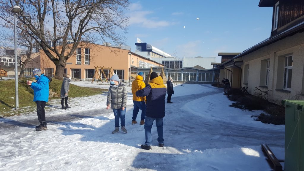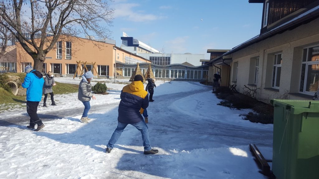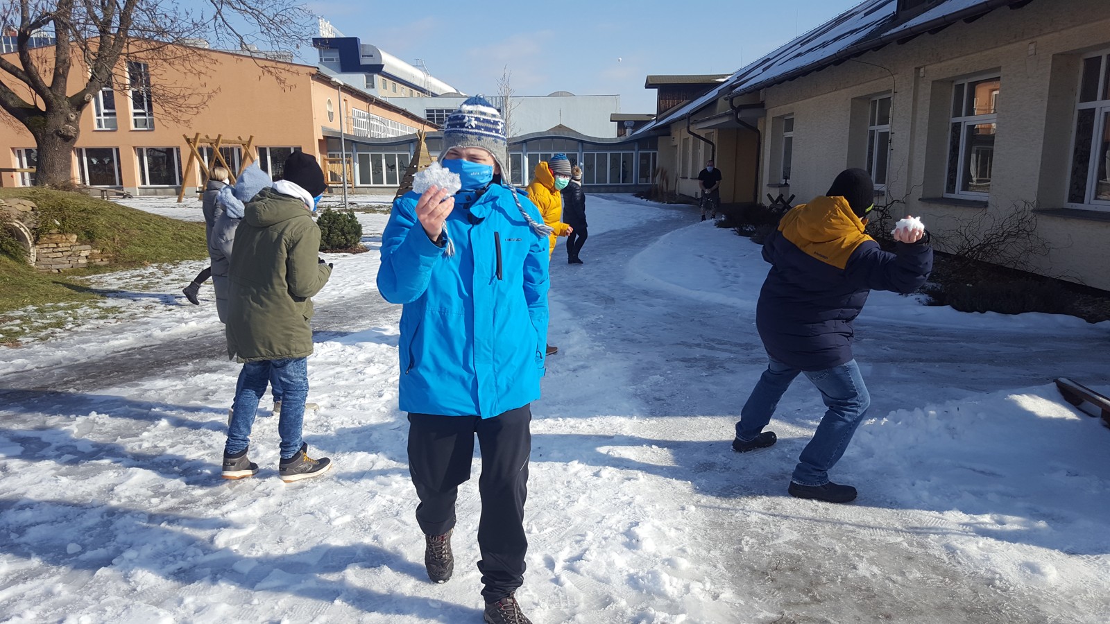 No a na závěr jsme si užili pořádnou koulovačku s panem školníkem. Nebyl to tedy úplně vyvážený souboj, byli jsme trošičku v přesile (6 žáků+2 učitelky proti 1 panu školníkovi), ale bezvadně jsme si to užili a nasmáli jsme se. Letos to byla koulovačka nejspíš úplně poslední.