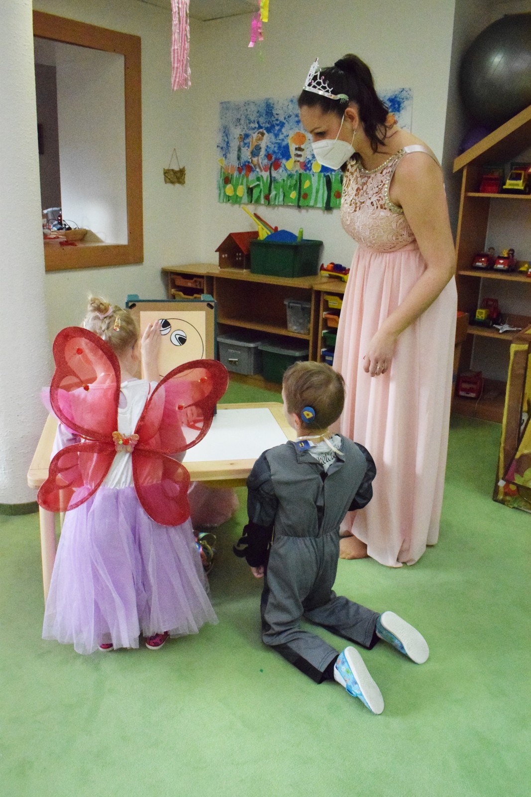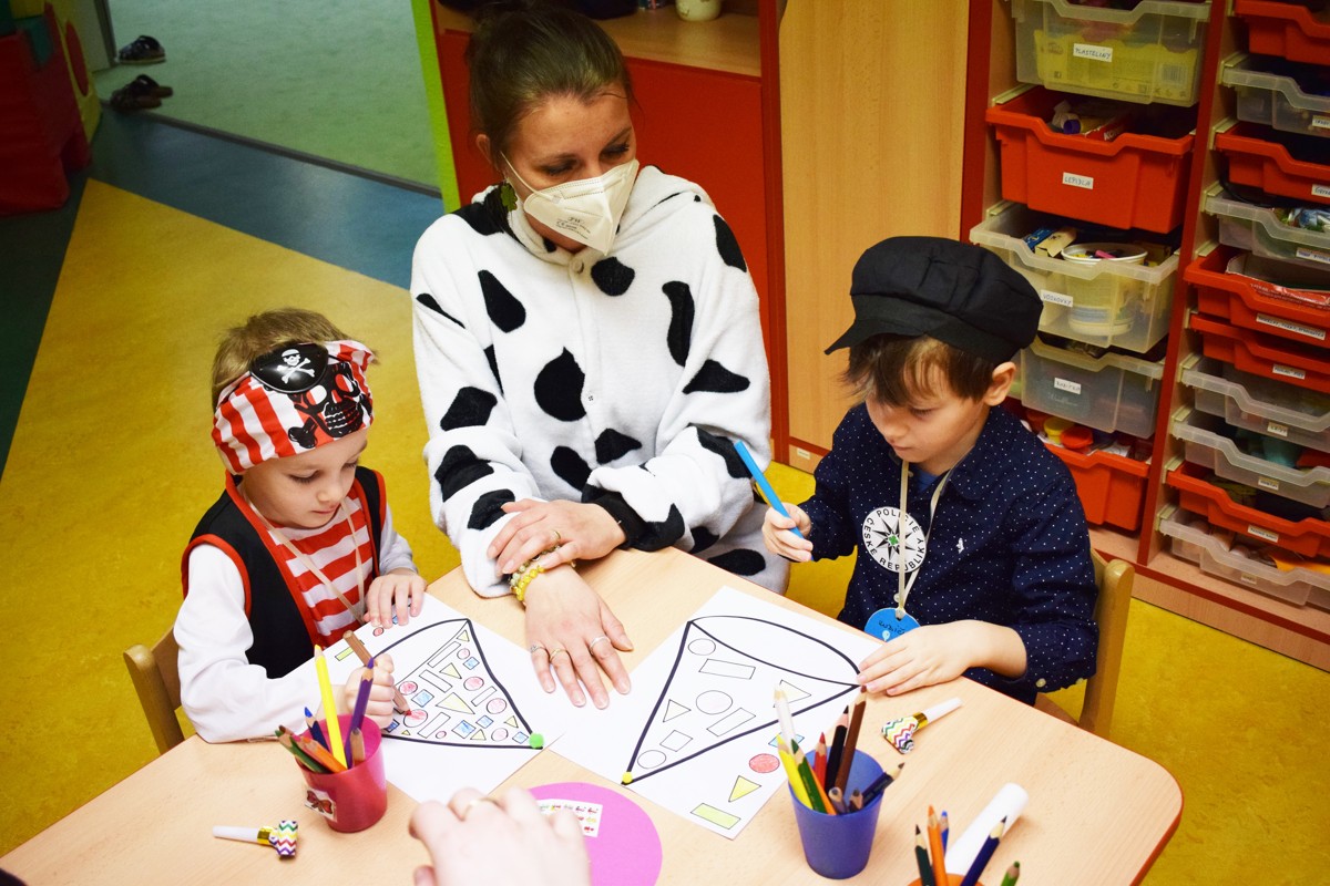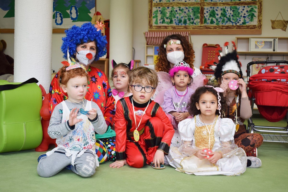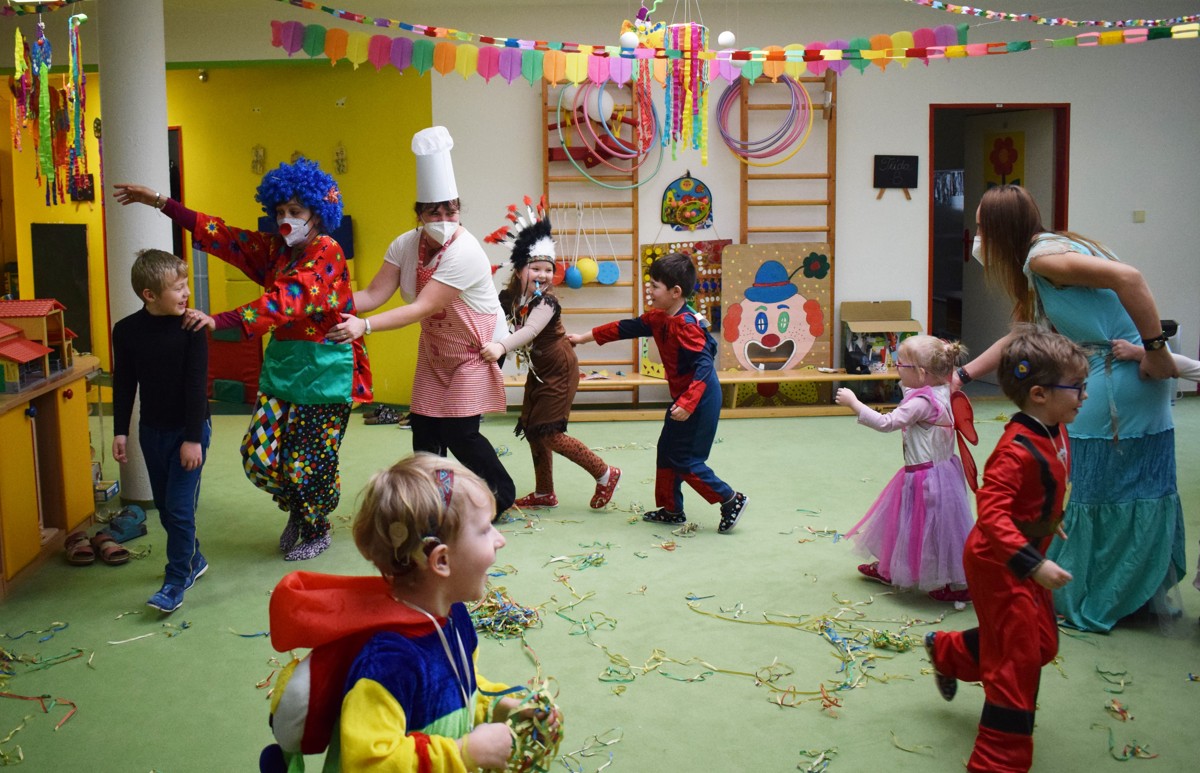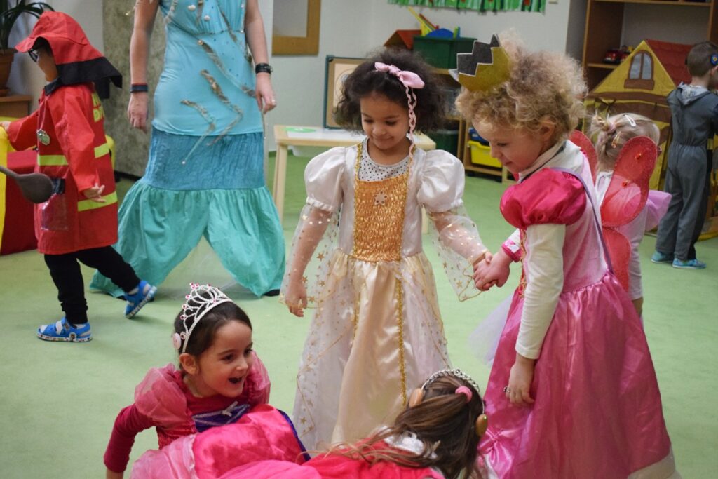 Ve čtvrtek 17. února 2022 to vypuklo. Do školky již od rána přicházely princezny, dorazila nejrůznější povolání zvláště ze záchranného systému – lékařka, policista, hasič, závodník, ale i filmoví hrdinové – batman, spiderman, pirát, z daleké Ameriky připutovala indiánka a také mezi nás zavítala i zvířátka – kočička, kráva, ovečka, no zkrátka bylo veselo!!!