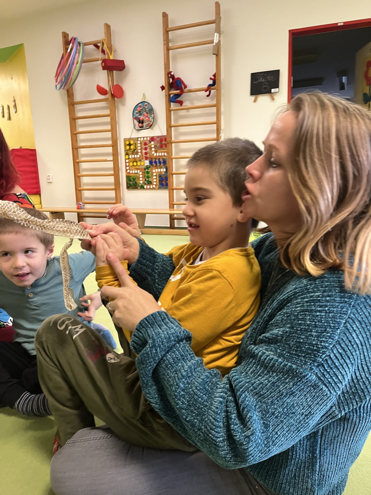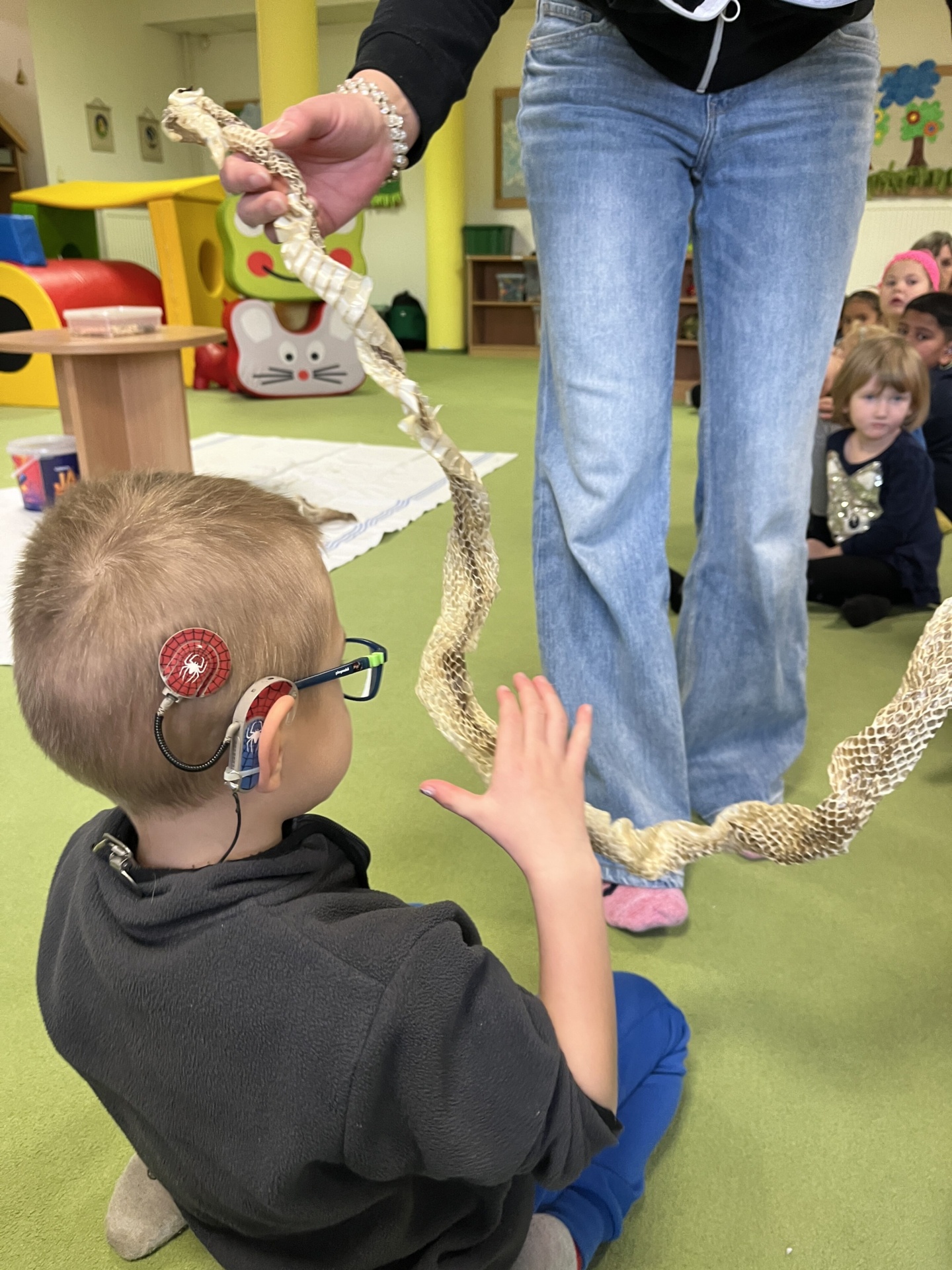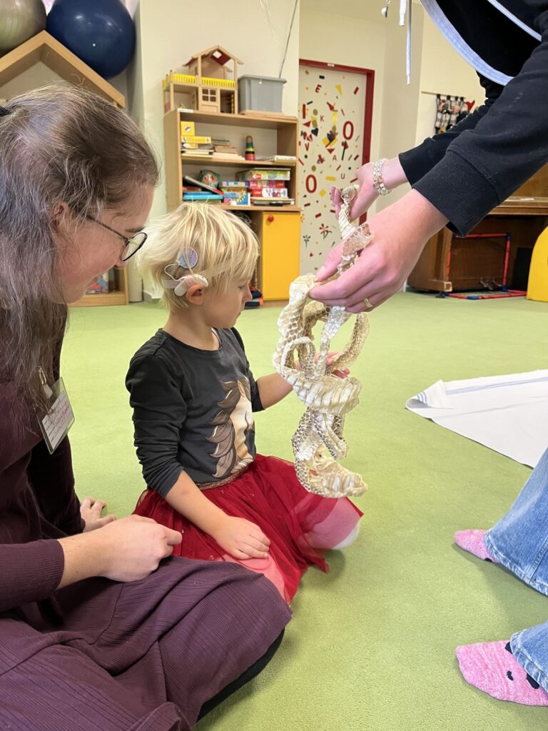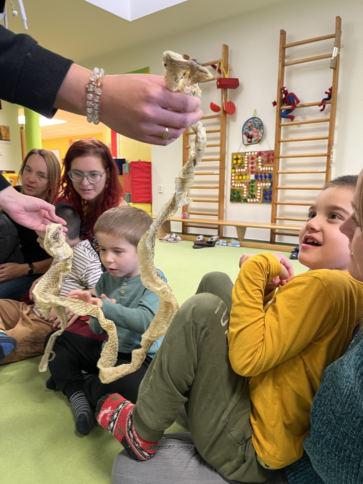 Dalšími fascinujícími hosty byli hadi. Děti se dozvěděly o různých druzích hadů, jak si svlékají kůži a o jejich přirozeném prostředí.
