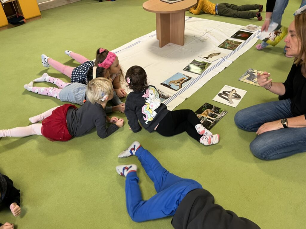 Děti plnily různé úkoly, aby si jednotlivá zvířata zapamatovaly. Nakonec nám z toho všeho vyšlo velký obraz, kde byla všechna zvířátka a co k nim patří. Dětem se celý program moc líbil.
