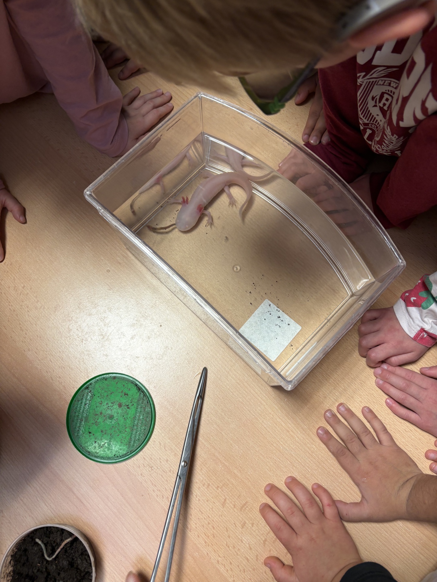 o jeho životě a jedinečné schopnosti regenerace. Fascinujícím zážitkem se stalo nejen jeho pozorování, ale především jeho krmení živou žížalou.
