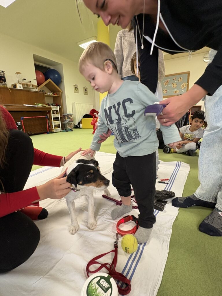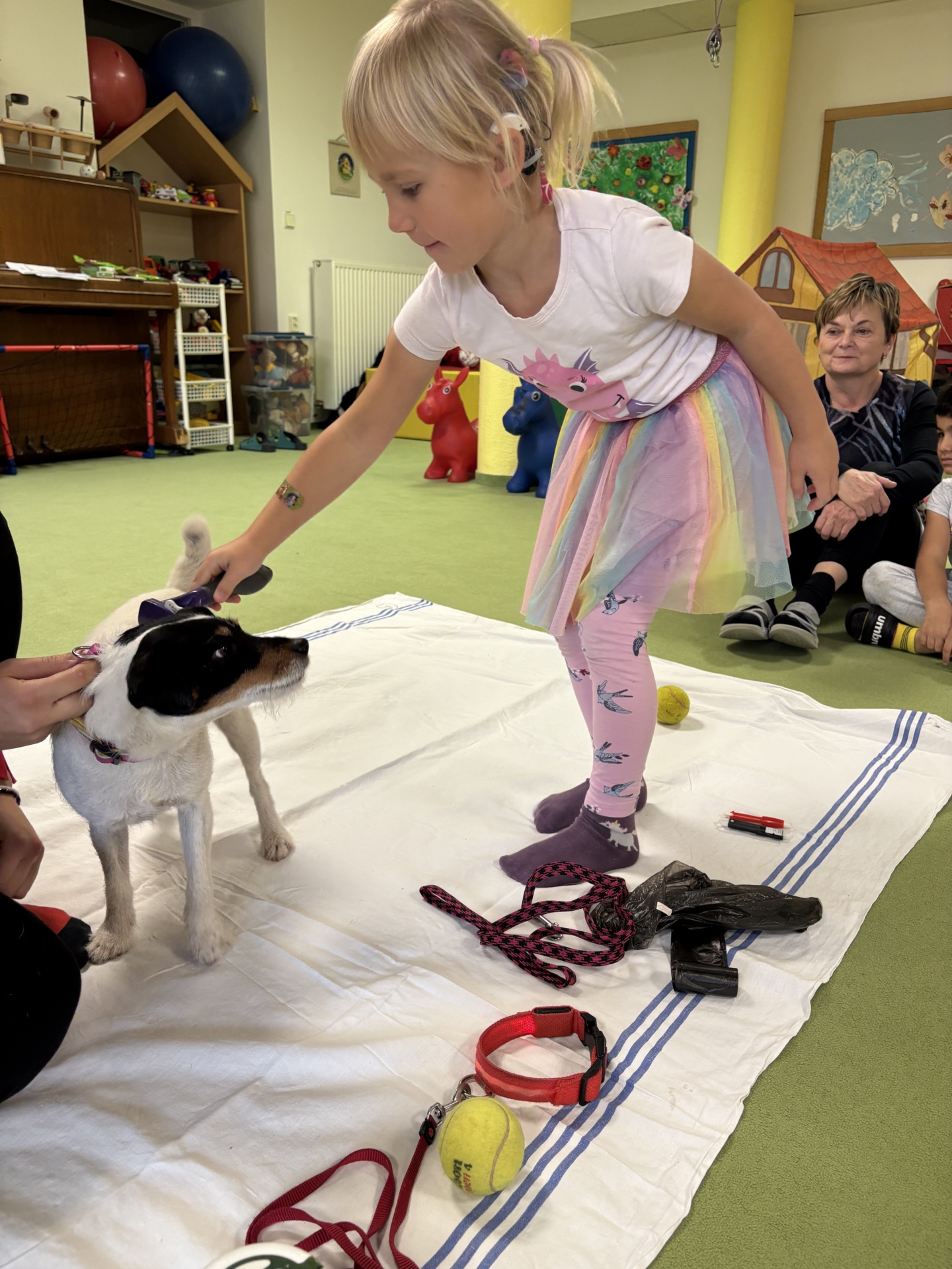 a mnoho dalšího. Děti si pod vedením Kristýnky mohly Ajku nejen pohladit, ale také vyzkoušet péči o ni nabídnutím pamlsku i kartáčováním.