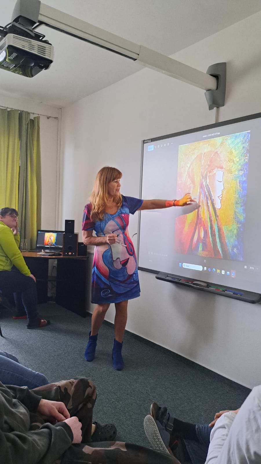 27. 03. 2025V pondělí 24. března naši střední školu navštívila významná osobnost, známá česká malířka a módní návrhářka Alena Ciková. Připravila si pro naše žáky přednášku o své tvorbě, životě, obrazech, výstavách a přenosu svých obrazů na textil. Vydala také knižní publikace.
