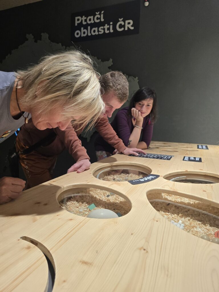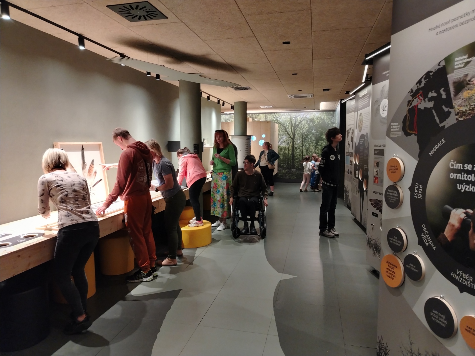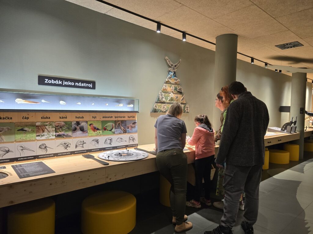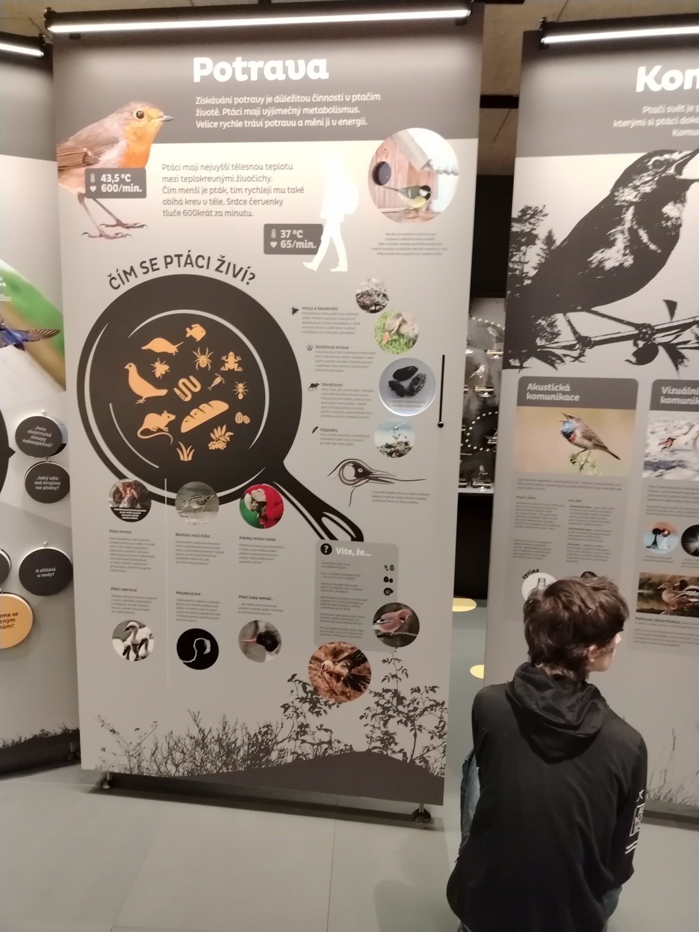 Nejprve jsme si prošli stálou expozici s názvem Ptáci Česka, která představuje 365 ptačích druhů žijících na území České republiky. Mohli jsme vidět téměř 600 exponátů. U některých ptáků byly k vidění i vajíčka. V druhé polovině výstavy jsme si se žáky mohli vyzkoušet, zda poznáme komu patří jaké vajíčko, viděli jsme rozdíl mezi nejmenším a největším vejcem. Žáci si poskládali si potravní pyramidu, poslechli si zpěv několika druhů ptáků, viděli různé druhy hnízd. Součástí výstavy byly informace o tom, co ptákům škodí, jak jim můžeme my sami pomáhat, jak velké a zbarvené mají peří, čím se živí, z čeho si staví hnízda, jak se orientují, dorozumívají, k čemu jim slouží zobák apod. Součástí hlavní expozice bylo kino, kde jsme si mohli vybrat z krátkých dokumentů o životě ptáků.