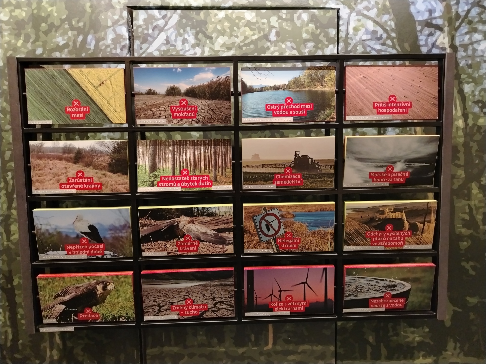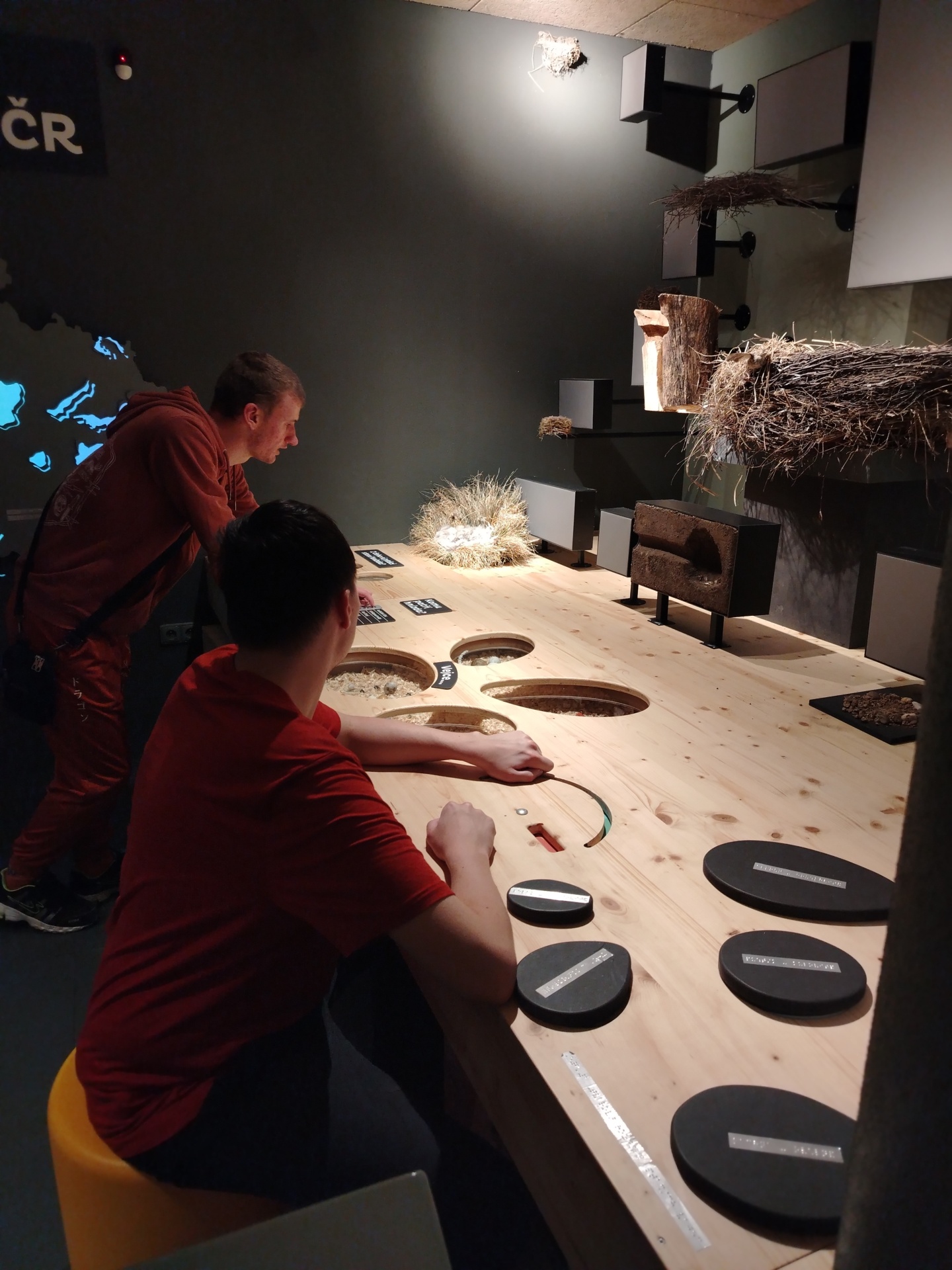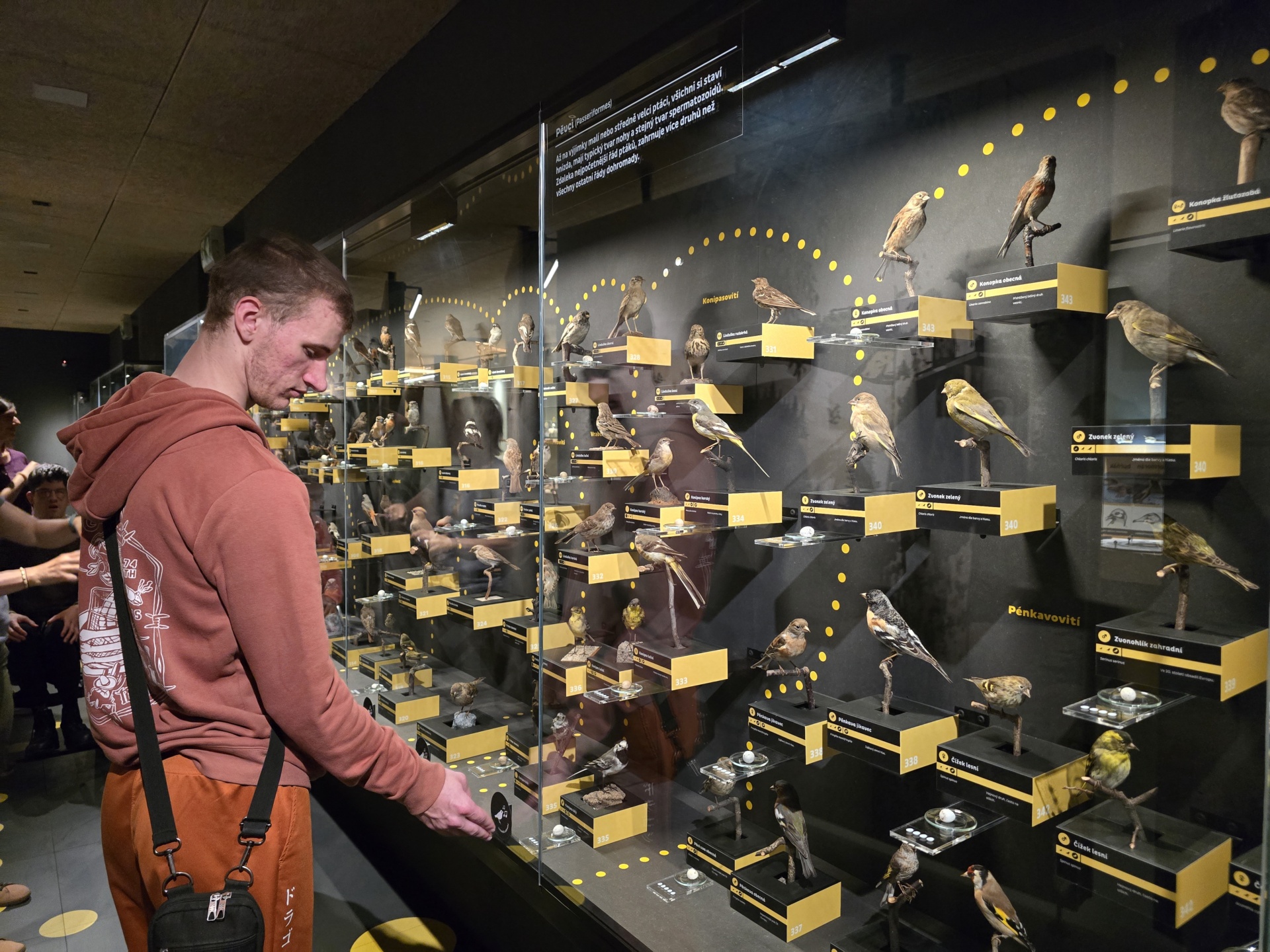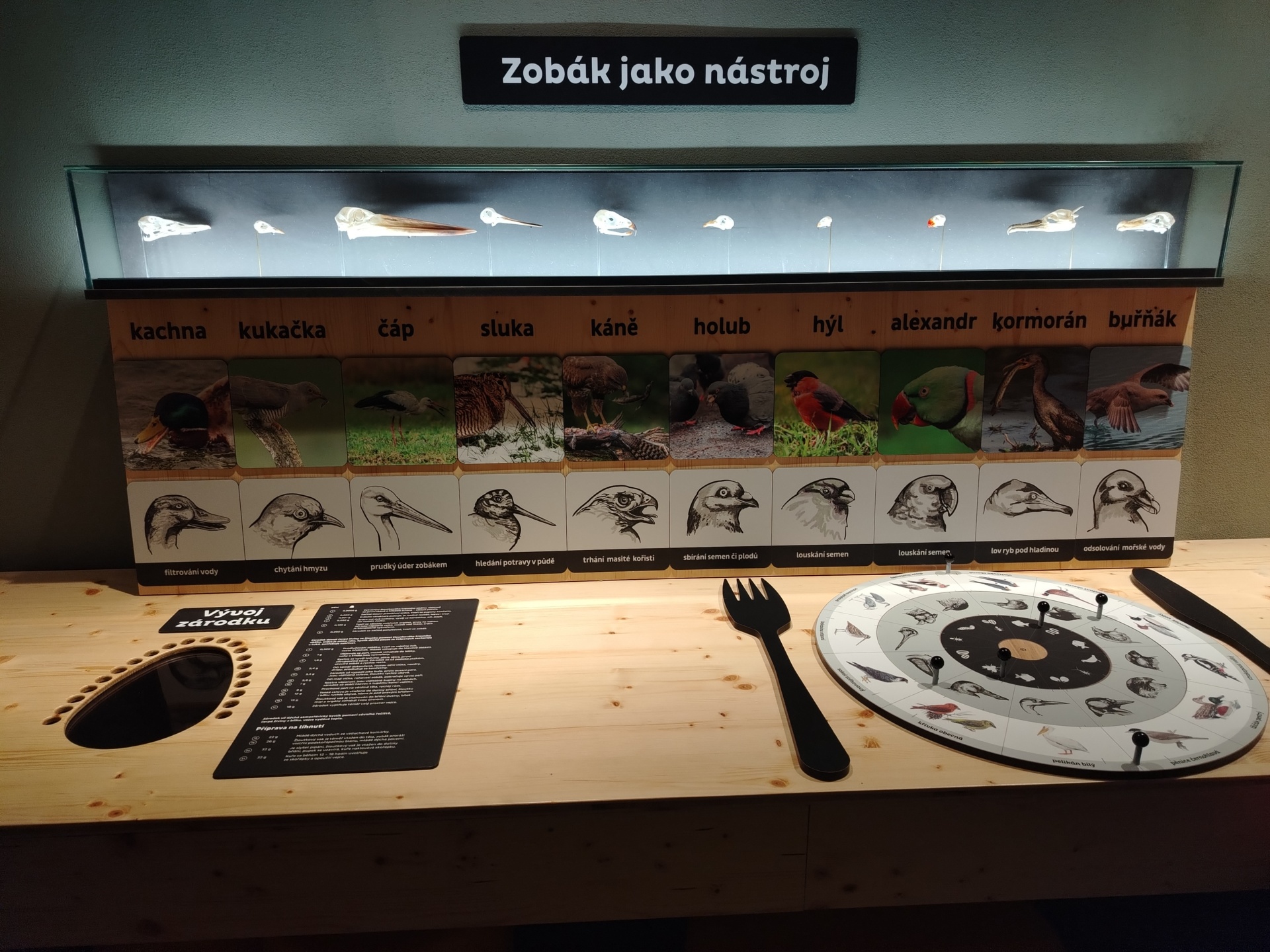Nejprve jsme si prošli stálou expozici s názvem Ptáci Česka, která představuje 365 ptačích druhů žijících na území České republiky. Mohli jsme vidět téměř 600 exponátů. U některých ptáků byly k vidění i vajíčka. V druhé polovině výstavy jsme si se žáky mohli vyzkoušet, zda poznáme komu patří jaké vajíčko, viděli jsme rozdíl mezi nejmenším a největším vejcem. Žáci si poskládali si potravní pyramidu, poslechli si zpěv několika druhů ptáků, viděli různé druhy hnízd. Součástí výstavy byly informace o tom, co ptákům škodí, jak jim můžeme my sami pomáhat, jak velké a zbarvené mají peří, čím se živí, z čeho si staví hnízda, jak se orientují, dorozumívají, k čemu jim slouží zobák apod. Součástí hlavní expozice bylo kino, kde jsme si mohli vybrat z krátkých dokumentů o životě ptáků.