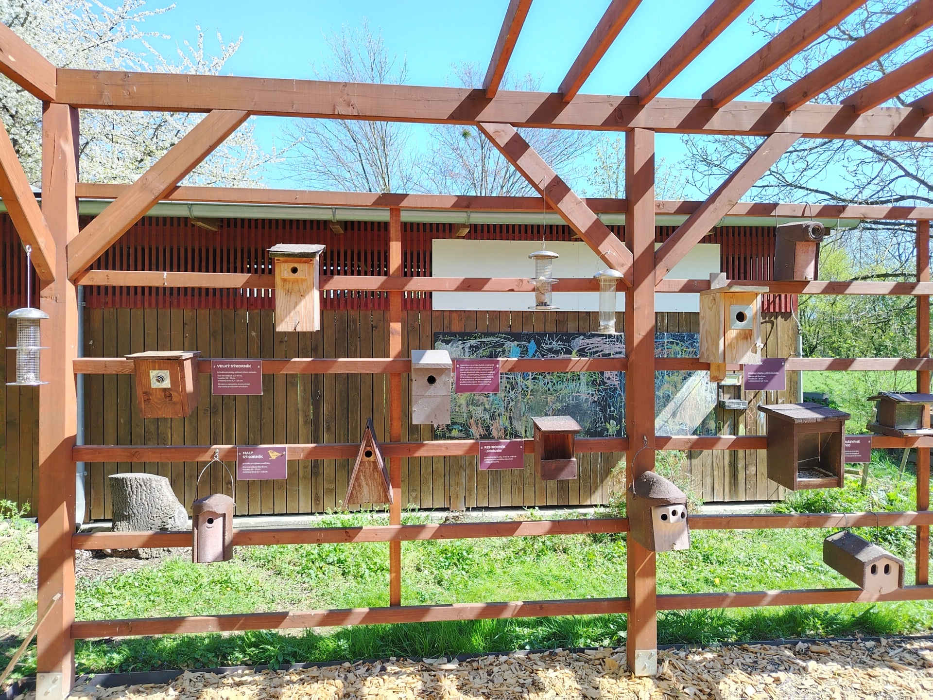 Venkovní expozice Ptačí zahrada Františka Gintera nás seznámila s různými druhy budek, nejen pro ptáčky. Podívali jsme se také na venkovní voliéry trvale handicapovaných ptáků, kteří již nejsou schopni přežít ve volné přírodě.