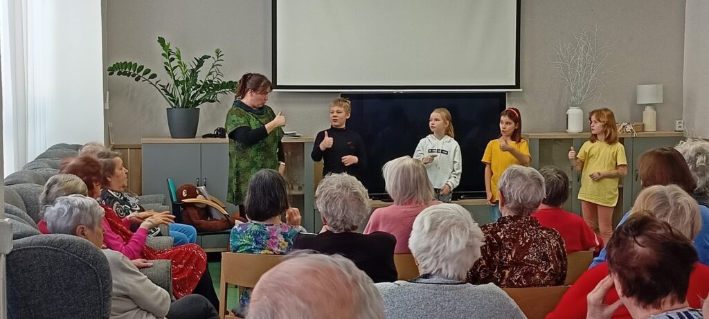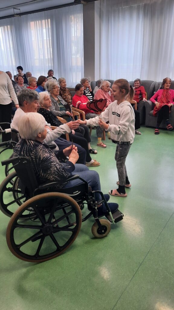 Zjistili jsme, že umíme už tolik básniček, písniček a tanečků, že to vydalo skoro na hodinový program😊! Ale hlavně – měli jsme radost ze samotného moc milého setkání. Babičky i dědečci se k nám přidávali a i oni dětem zazpívali písničky jejich srdce. Měli jsme přichystány i malé dárečky, ale byli jsme překvapení, co vše pro nás připravili senioři – nejen, že nás přivítali pohoštěním – buchtou, kterou pro nás upekli již předešlý den, ale děti dostaly záložky do knížek a další hand made výrobky.
