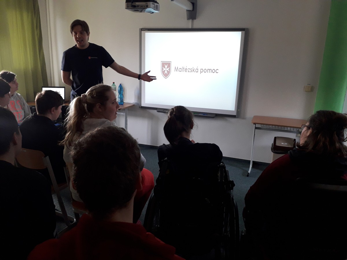 Pan Mgr. Karel Čapka si pro naše žáky připravil zajímavou přednášku s prezentací o tom, co Maltézská pomoc vlastně je, komu pomáhá, kdy vznikla, co je posláním organizace apod. Dozvěděli jsme se, že je zřizována řádem maltézským rytířů. Jako celosvětová organizace byla založena před 900 lety. V České republice se nachází celkem 12 poboček Maltézské pomoci. Na území České republiky působí od roku 2002.