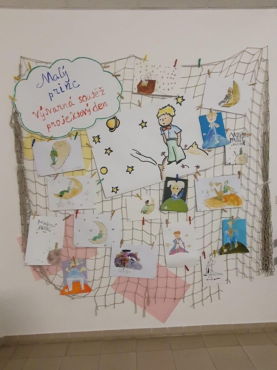Součástí projektového dne bylo taneční vystoupení souboru paní učitelky Mgr. Marie Pečivové, pak následovala krátká scénka s Malým princem a pilotem, který havaroval v poušti. Filmové představení, kreslení a malování, vyplňování předem připravených pracovních listů a soutěžení všeho druhu pobavilo nejen žáky, ale i pedagogy naší školy.