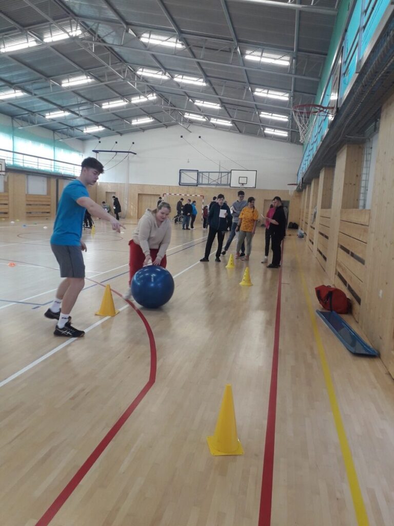 Byli jsme s našimi žáky rozděleni do skupin a procházeli jsme si jednotlivá stanoviště. Každé splněné stanoviště nám studenti FTK zapsali do „Skóre karty“. Žáci si vyzkoušeli: hod oštěpem, jízdu na vozíku, hod kinballem, slalom mezi kužely, curling, Dodomondo, Bocciu a lanovku. Závěrem nechyběla diskotéka, kde si žáci mohli zatancovat a zazpívat.