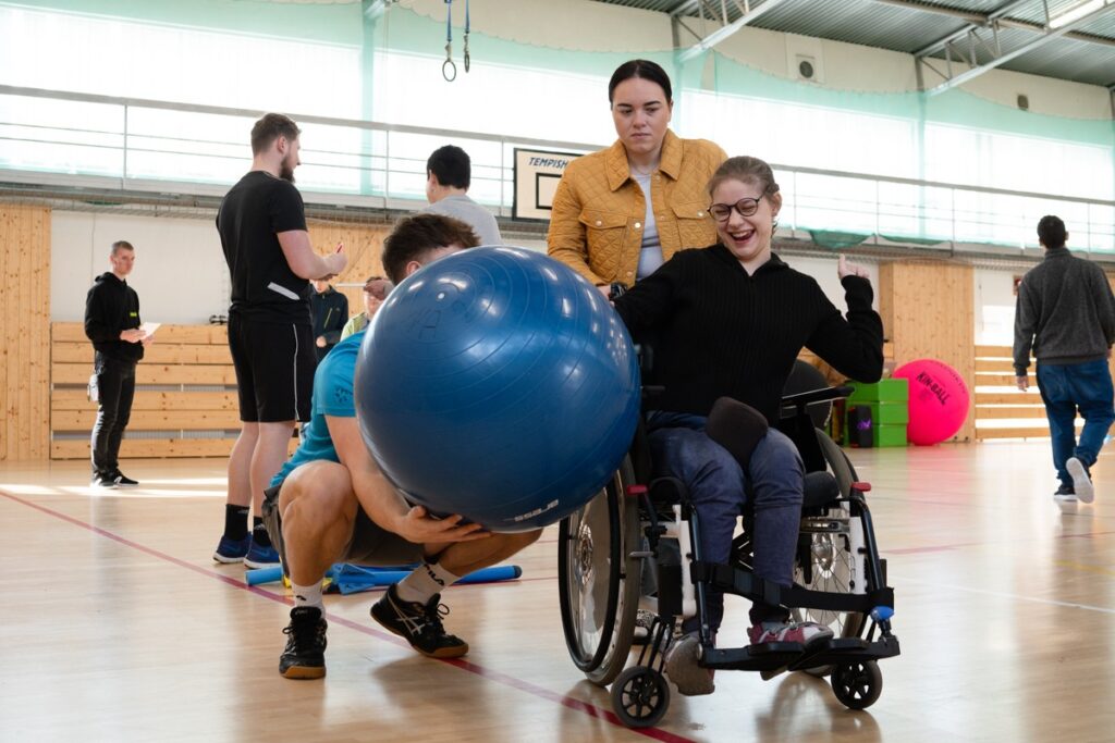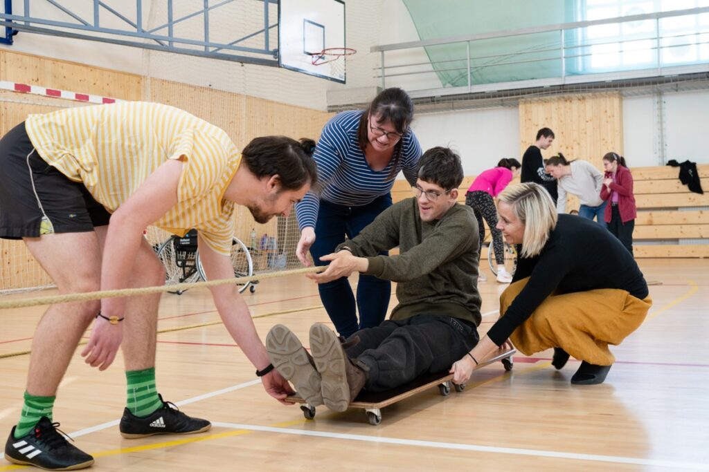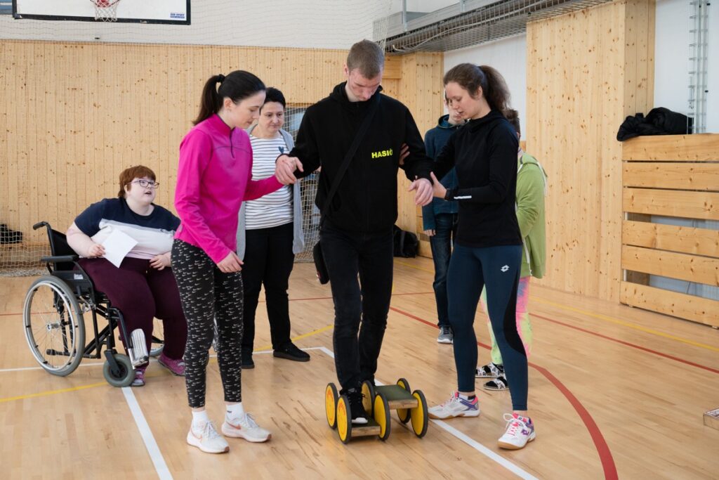 Čtvrteční dopoledne se v naší tělocvičně neslo v duchu Paralympijského školního dne. Spoustu zajímavých pohybových aktivit a soutěží si pro naše žáky střední praktické školy připravila spřátelená Fakulta tělesné kultury Univerzity Palackého v Olomouci. Studenti a konzultanti Aplikovaných pohybových aktivit nám přivezly na ukázku, seznámení a vyzkoušení, pomůcky, které mnozí žáci viděli nebo vyzkoušeli zde poprvé.