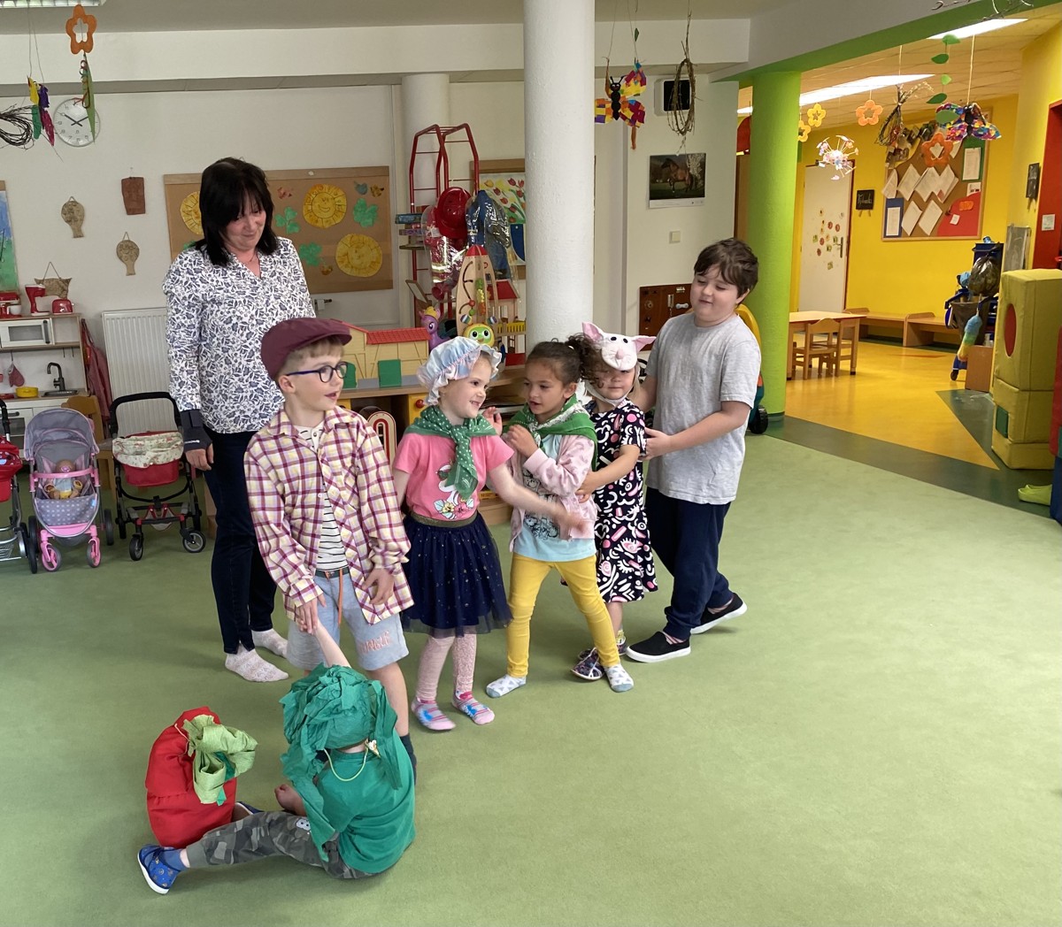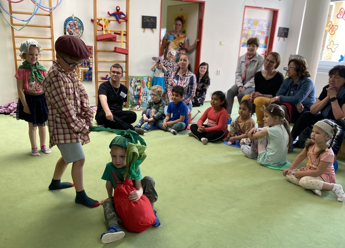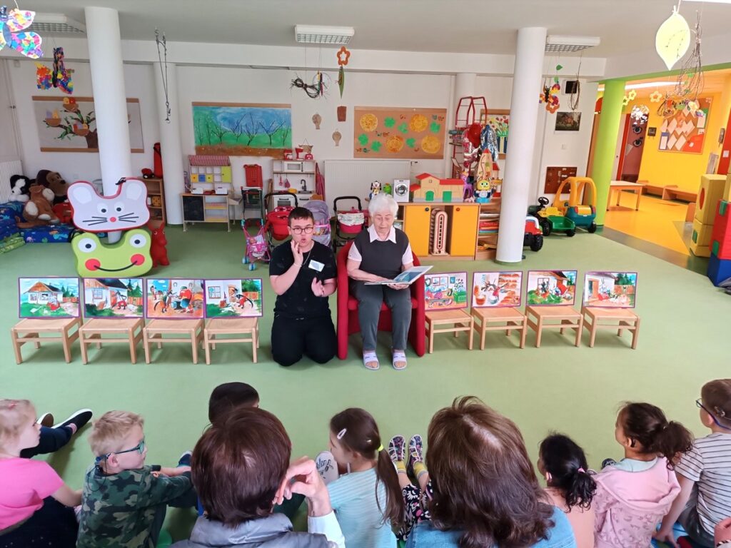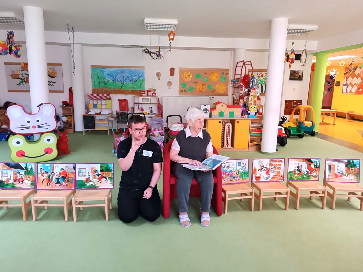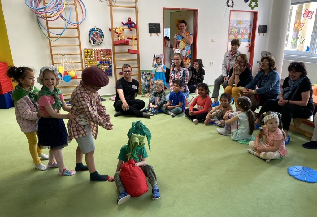 29. 05. 2023Ve čtvrtek 25. 5. 2023 nás čekalo milé překvapení. Navštívit nás přišly čtecí babičky z RC Heřmánek. Přivedla je „naše“ babička Ludmilka, která chtěla všem ukázat, jak se v naší školce čte pohádka – tentokrát O neposlušných kůzlátkách. Po pohádce jsme si s babičkami zatančili a zazpívali, babičky si prohlédly školku a na závěr jim naše děti zahrály pohádku O veliké řepě.