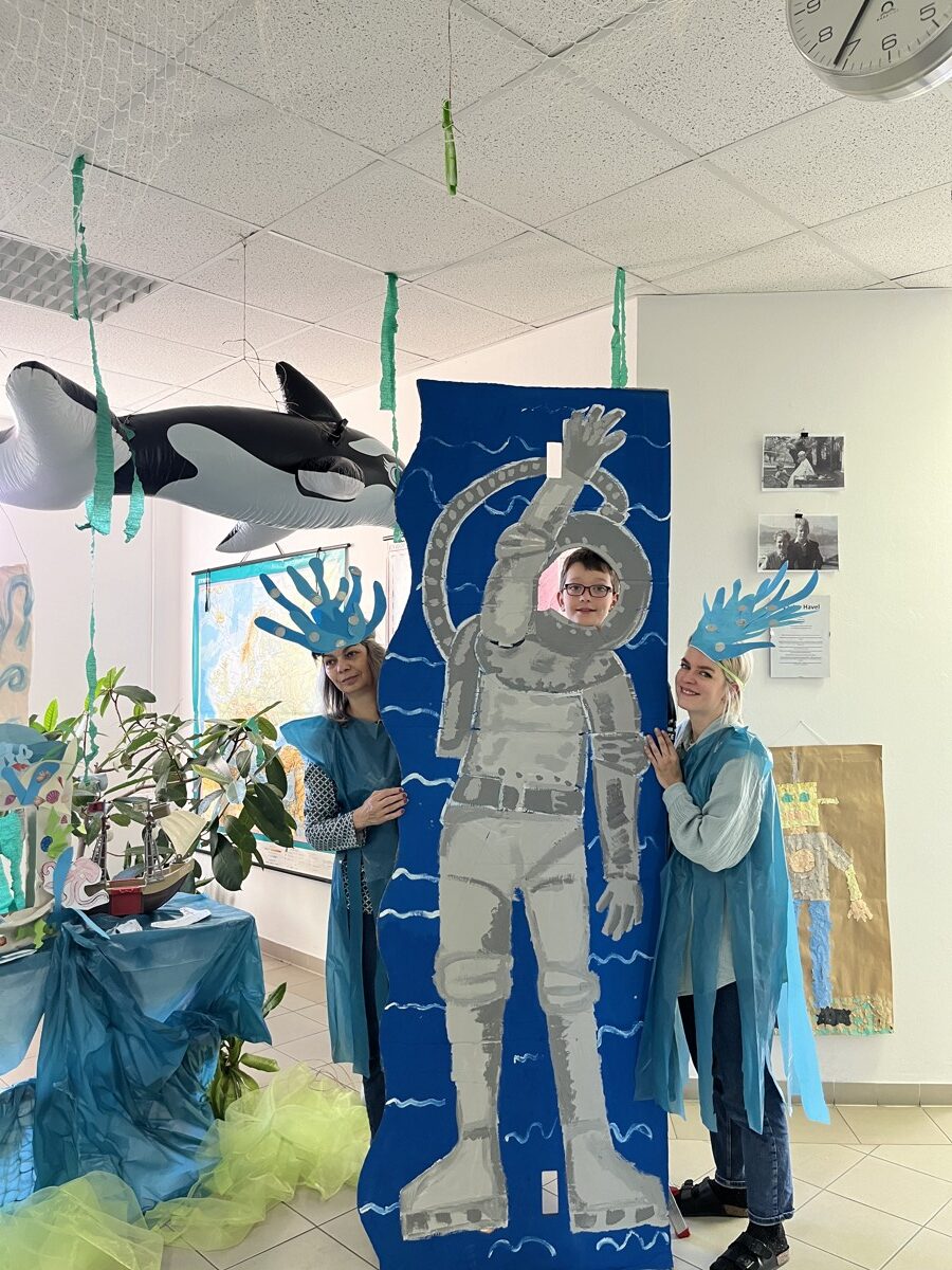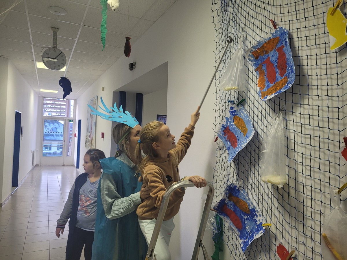Hlavním cílem projektového dne bylo seznámení s jedním z vážných environmentálních témat dnešních dnů – záchranou světových oceánů. Naši školu jsme v rámci projektového dne pro žáky přeměnili v oceán. Jednotlivá podlaží školy jsme použili coby interaktivní herní prostor. Žáci procházeli školou-oceánem a hravou formou se seznamovali s životním prostředím jednotlivých mořských živočišných druhů a ekosystémů. V každém patře na ně čekala řada aktivit, rozčleněných podle náročnosti tak, aby se mohli zapojit všichni žáci naší školy. Díky absolvování velké nástěnné hry (na principu známého „člověče nezlob se“), plnění jednotlivých úkolů a zpracování pracovních listů, žáci získali povědomí o bohatosti života v oceánu, o jeho křehkosti a také o tom, že jej musíme chránit, aby se z něj mohly těšit i následující generace.