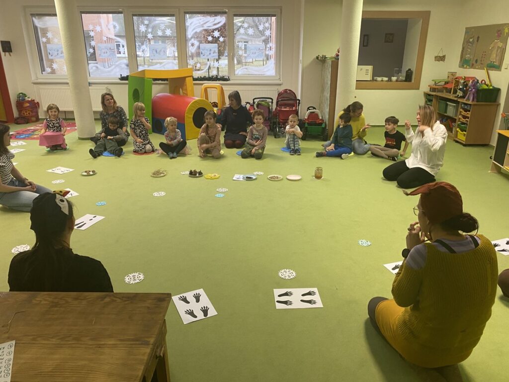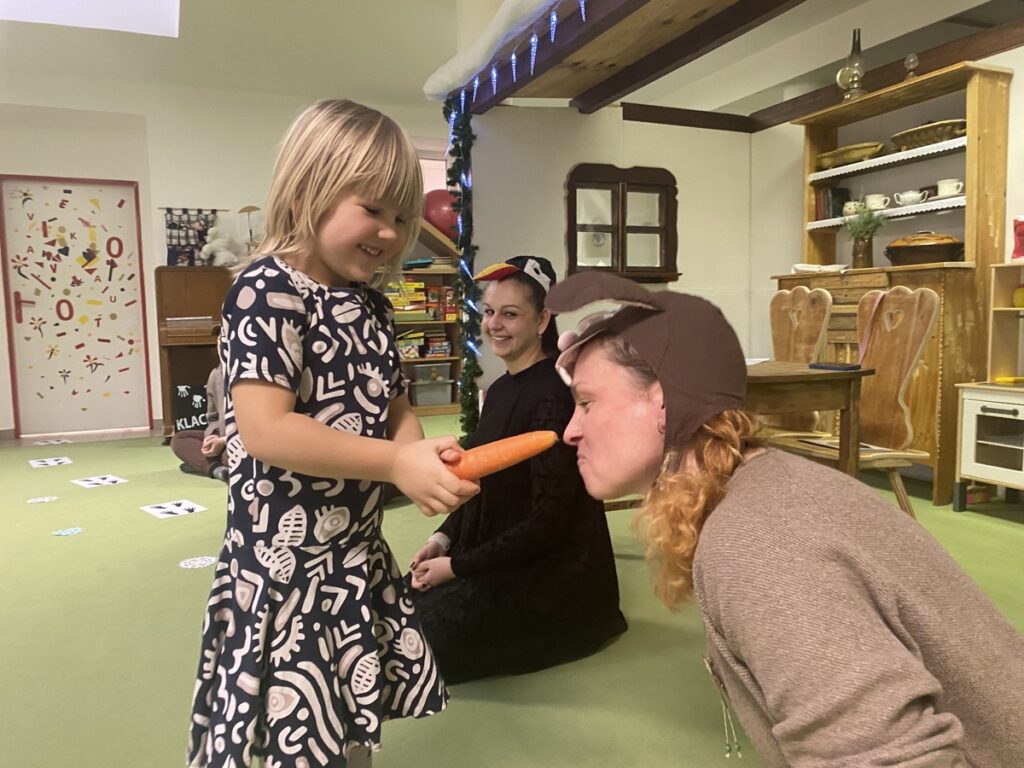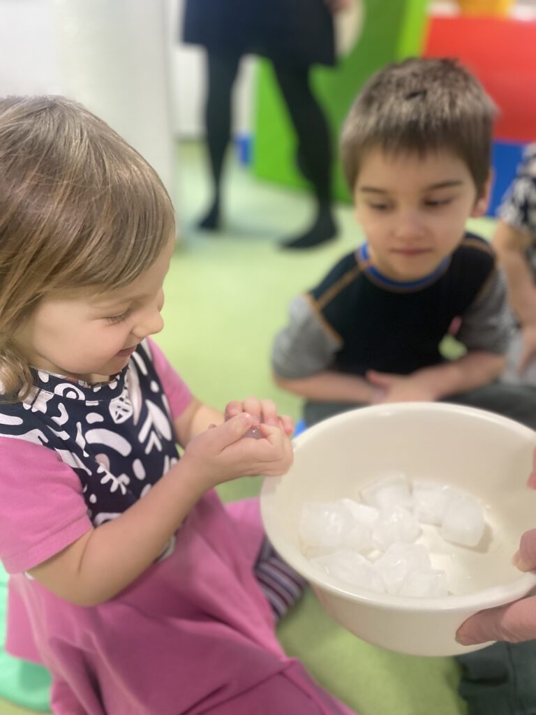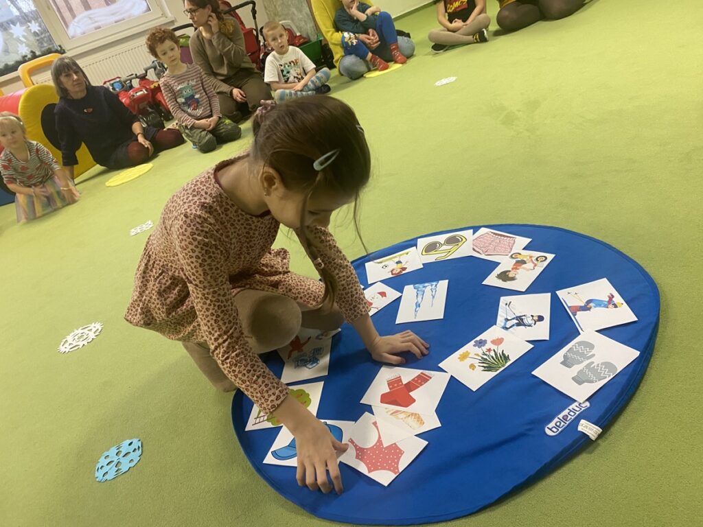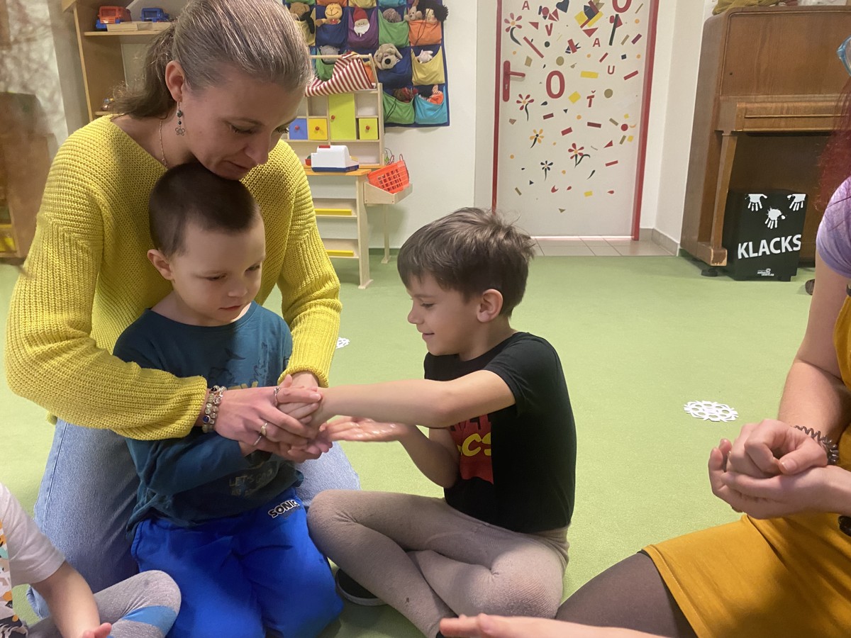 Děti si hravou formou vyzkoušely, co se děje s ledem, když se zahřívá. Společně roztřídily obrázky spojené se zimou a teplem, identifikovaly stopy medvěda, veverky, ptáčka a zajíce. Také se dozvěděly, co tato zvířata jedí v zimě, a jak jim můžeme pomoci, aby měla dostatek potravy. Odhalili jsme také tajemství, jak medvěd přežívá zimu, a vyzkoušeli si na něj zahrát při pohybové hře.