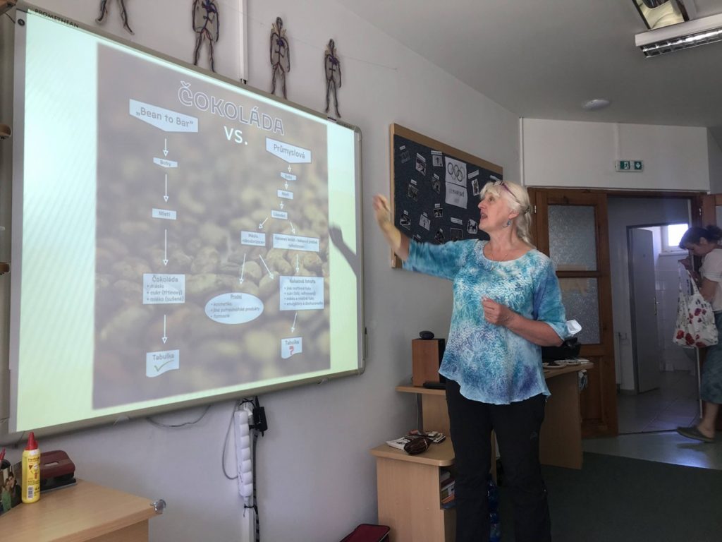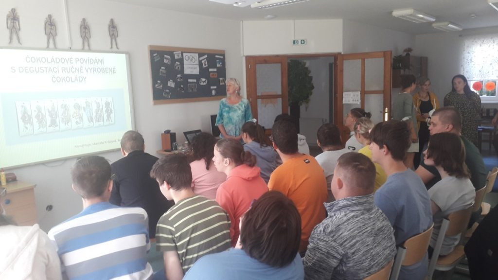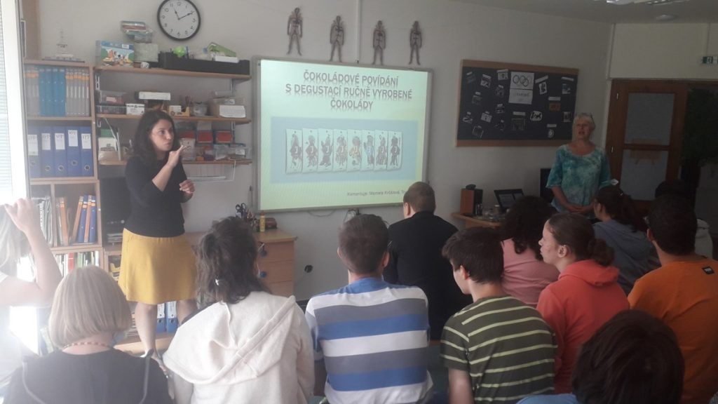 09. 09. 2021V pondělí 6.9. za námi do Olomouce až z dalekého Trutnova přijela paní Marcela Krčálová, aby nás seznámila s historií a benefity konzumace kvalitní čokolády. Prostřednictvím vyprávění a obrazové prezentace žáci nahlédli do světa pěstování kakaovníku i zpracování kakaových bobů v místech původu. Podrobně jim byly vysvětleny rozdíly mezi průmyslovou čokoládou a „řemeslnou“ – tou kvalitní a poctivou i čím se řídit při výběru čokolády v obchodech.