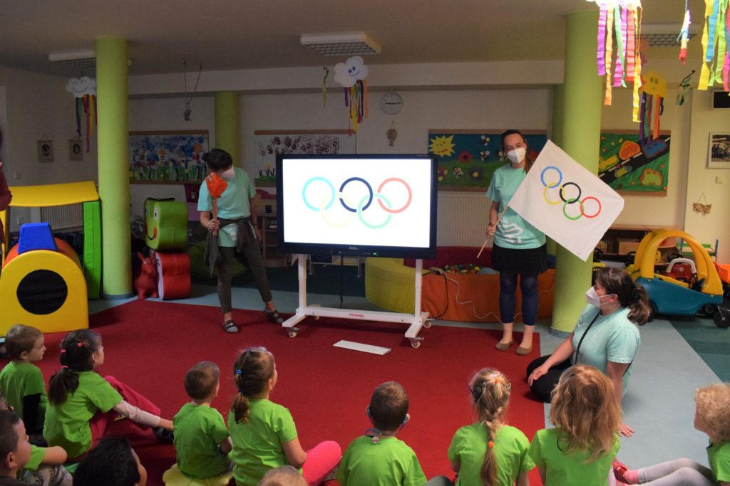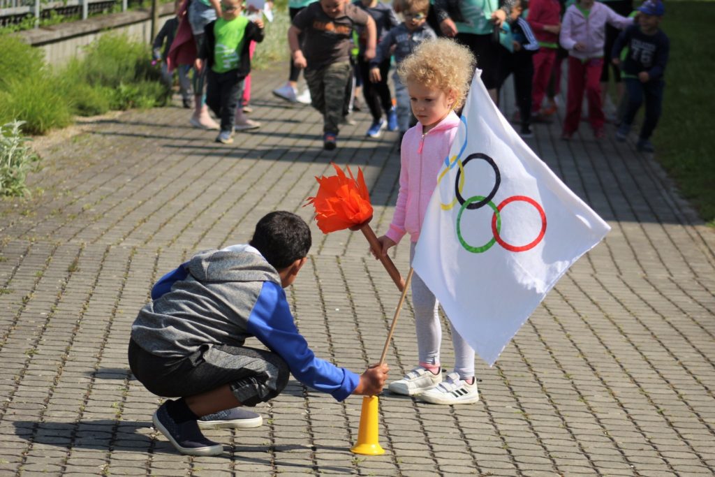 03. 06. 20211.červen je svátkem všech dětí. Naše školka se rozhodla oslavit tento den uspořádáním Olympiády. Byla to netradiční Olympiáda, ve které se spojily letní i zimní sportovní disciplíny. Nejprve děti společnými silami dopravily olympijský oheň a vlajku na místo, odkud se odstartoval olympijský závod. Na naše malé sportovce čekalo osm stanovišť s různými disciplínami. Děti musely prokázat svou zdatnost v jízdě na kole, osedlat si koně a projet s ním překážky, trefit se do brány jako praví hokejisté, vyzkoušet si ležku i stojku v biatlonu,