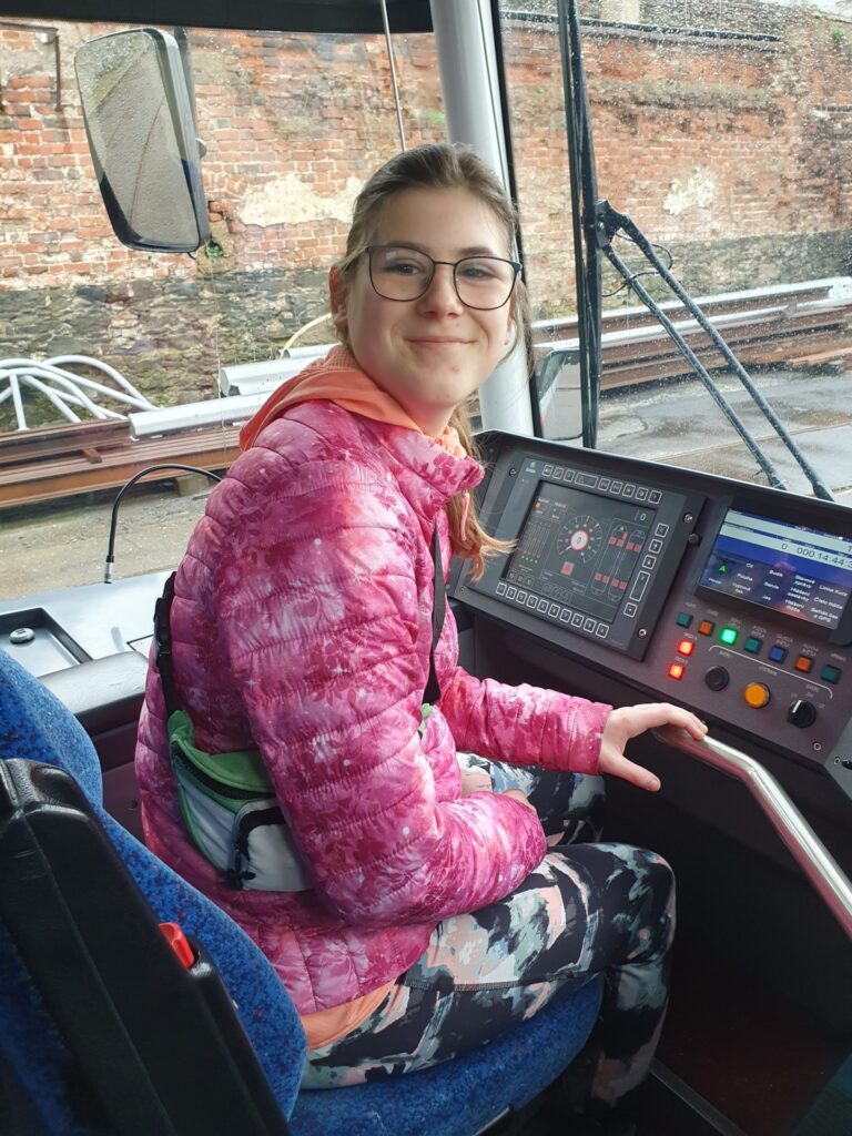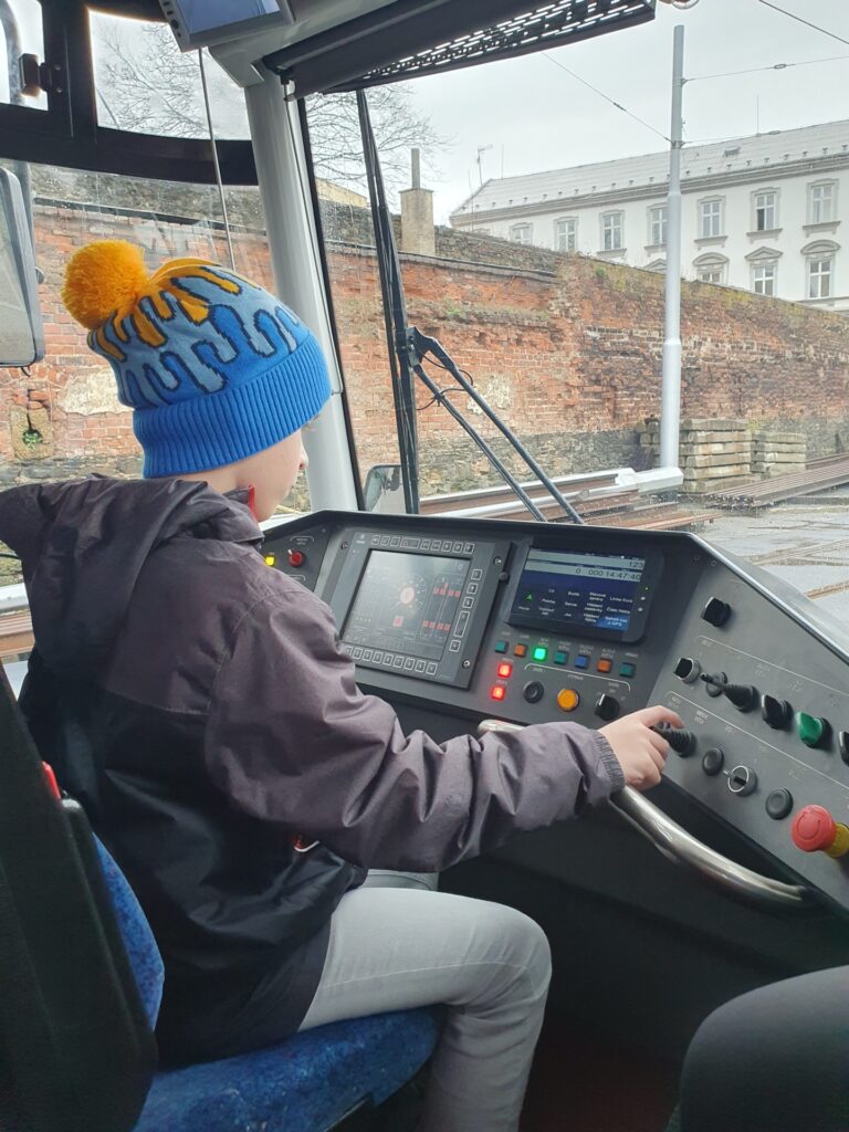 Věnovali se nám moc milí čtyři pánové, zaměstnanci DPMO. Prozradili nám spoustu zajímavostí „ze života tramvaje“, všichni jsme si mohli vyzkoušet řídit tramvaj – samozřejmě jen zabržděnou😊