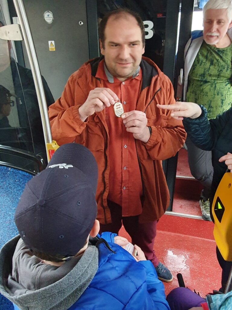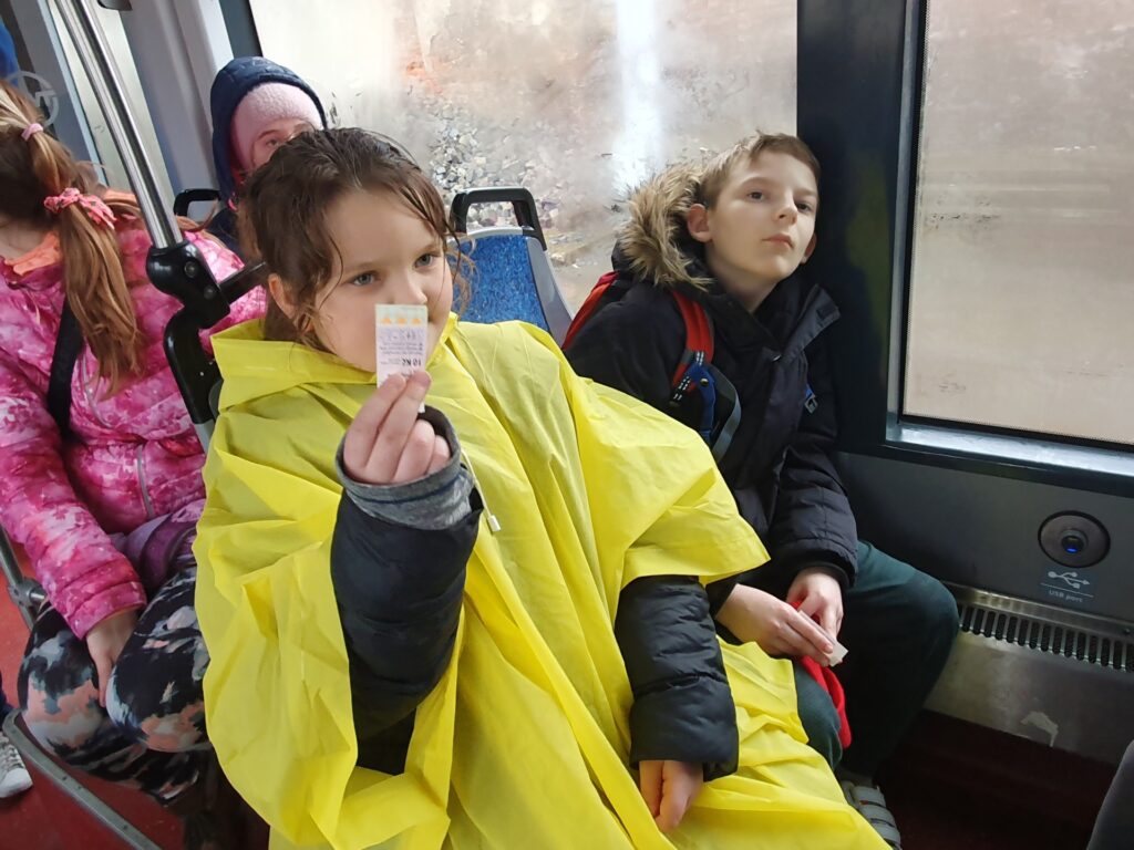 Nakonec nám vysloužilý pan revizor vysvětlil význam své práce, ukázal nám revizorský odznak a vyzkoušeli jsme si, jak taková kontrola jízdenek probíhá.