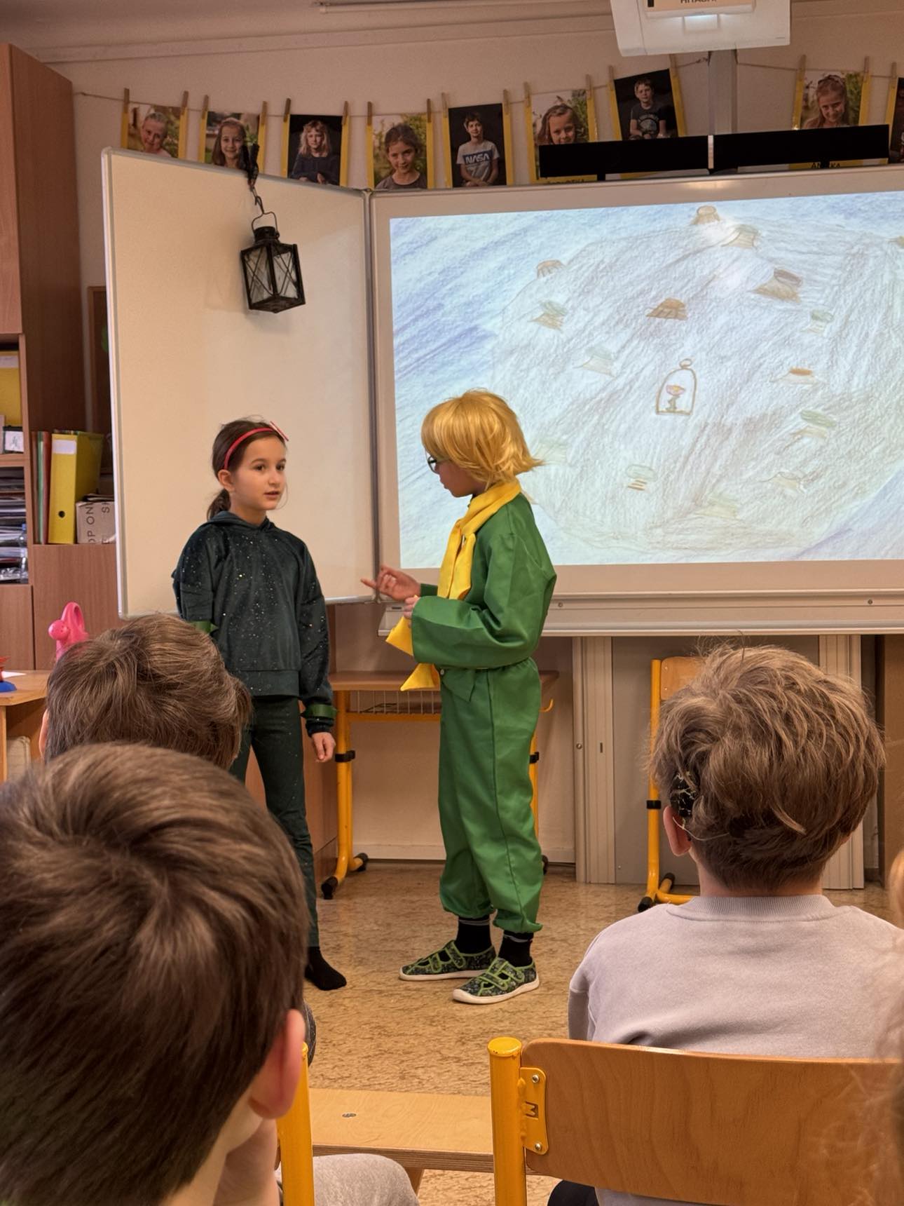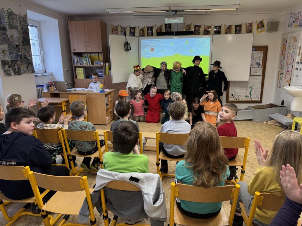 Kamarádi pro nás připravili velkolepé divadelní představení Malý princ. Snad jen školní prostory a žákovské židličky nás utvrzovaly v tom, že se nejedná o profesionální divadlo. Do představení byly aktivně zapojeny všechny děti 3. třídy, každý něco nebo někoho hrál, zpíval, kulisy žáci zajistili svými výtvarnými pracemi a jejich prezentací na interaktivní tabuli na pozadí děje. Překvapila nás neuvěřitelná empatie „herců“, kteří trpělivě čekali, až bude přetlumočena replika našim dětem do znakové řeči, a pak teprve pokračovali dál.