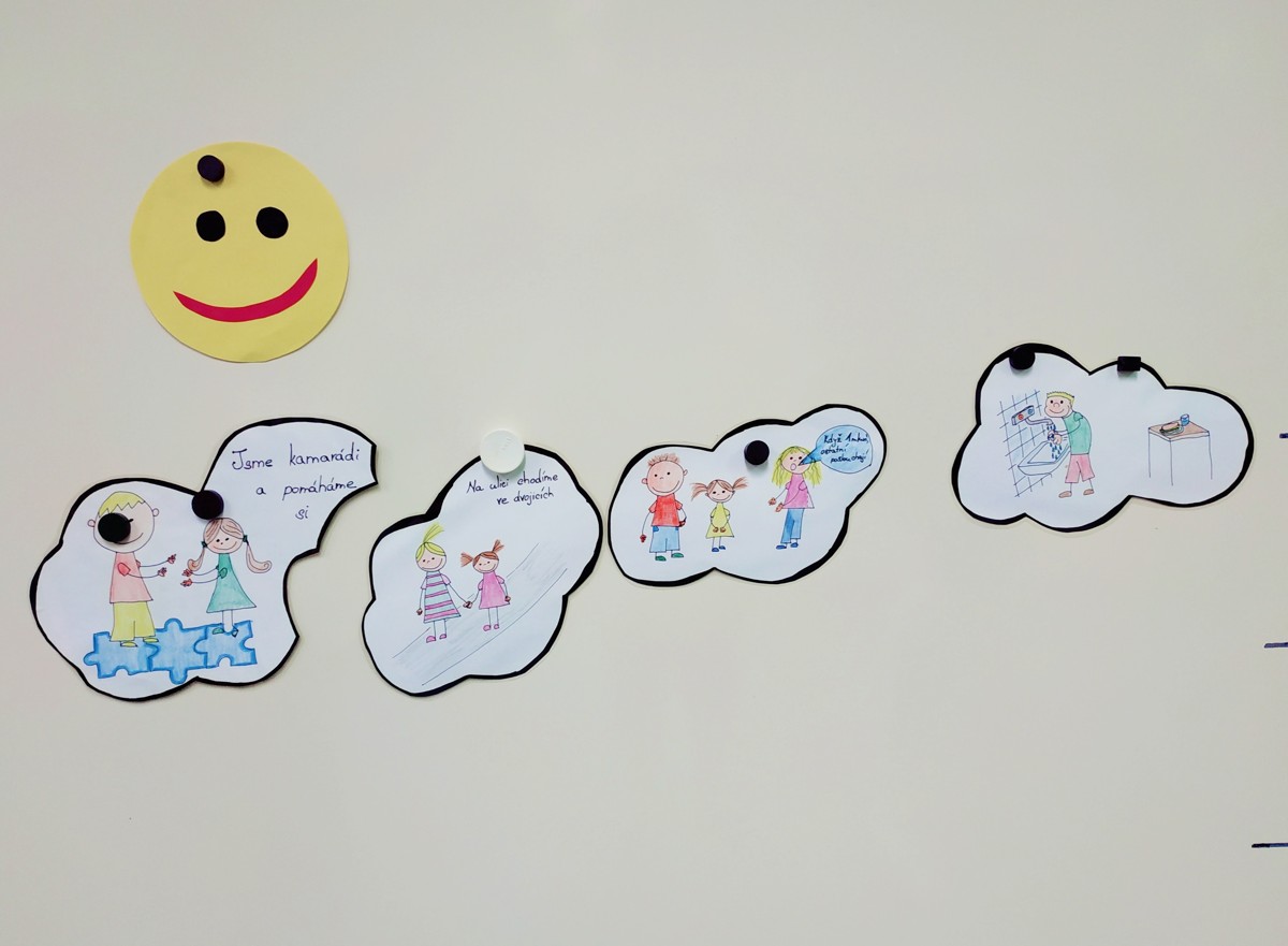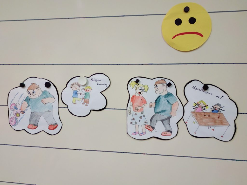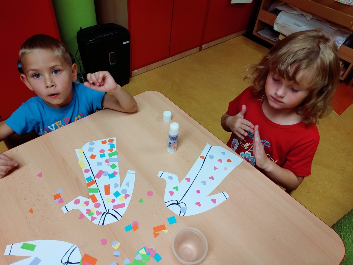 Děti pak společně přemýšlely nad různými situacemi na obrázcích, jestli se na nich děti chovají hezky nebo ne. Nakonec si každý tu svoji košilku ozdobil tak, jak se mu líbilo.