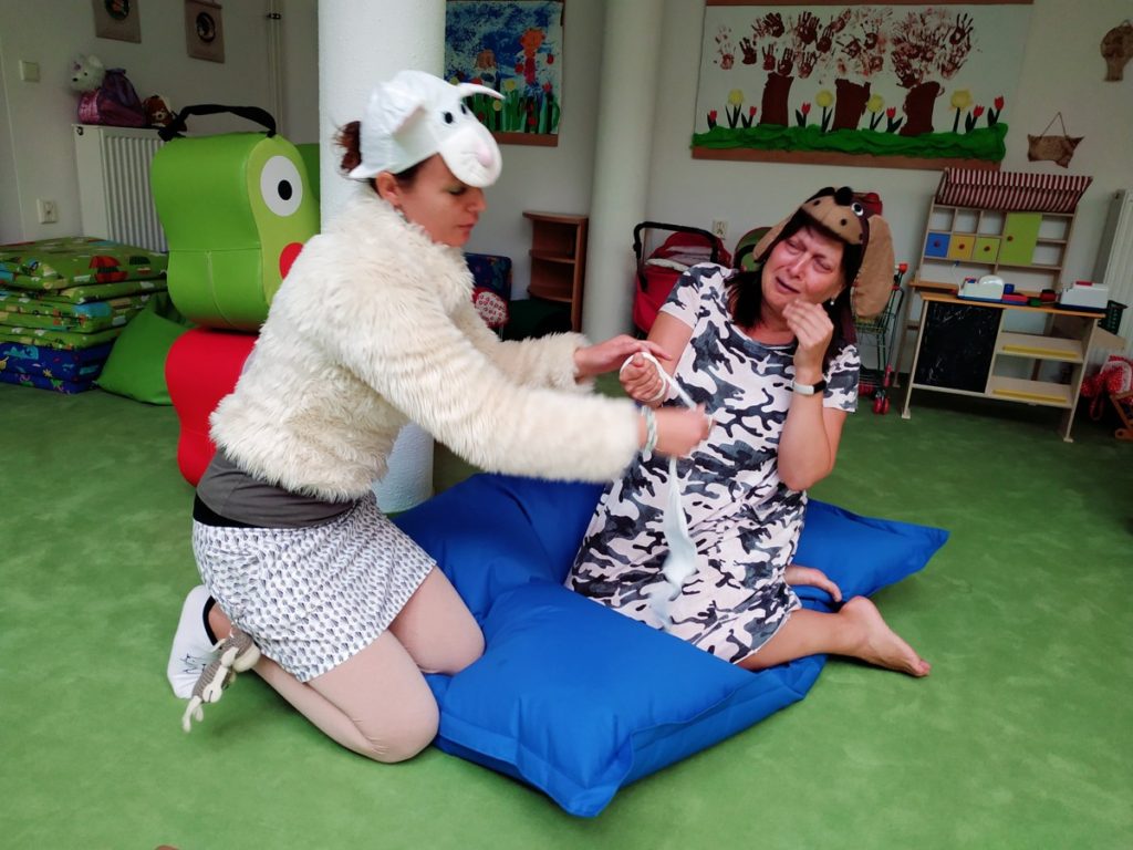 Ve čtvrtek 16. září k nám zavítala do školky vzácná návštěva – z pohádkové knížky Josefa Čapka přišli pejsek a kočička. Povykládali nám pohádku „O pyšné noční košilce“. Pejskovi ba ani dětem se vůbec nelíbilo, jak byla bohatá košilka pyšná, ale nakonec to dobře dopadlo a z košilek se staly kamarádky. A tak to má být!