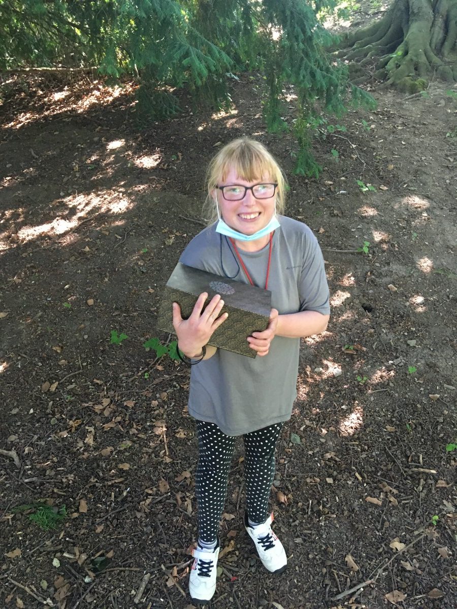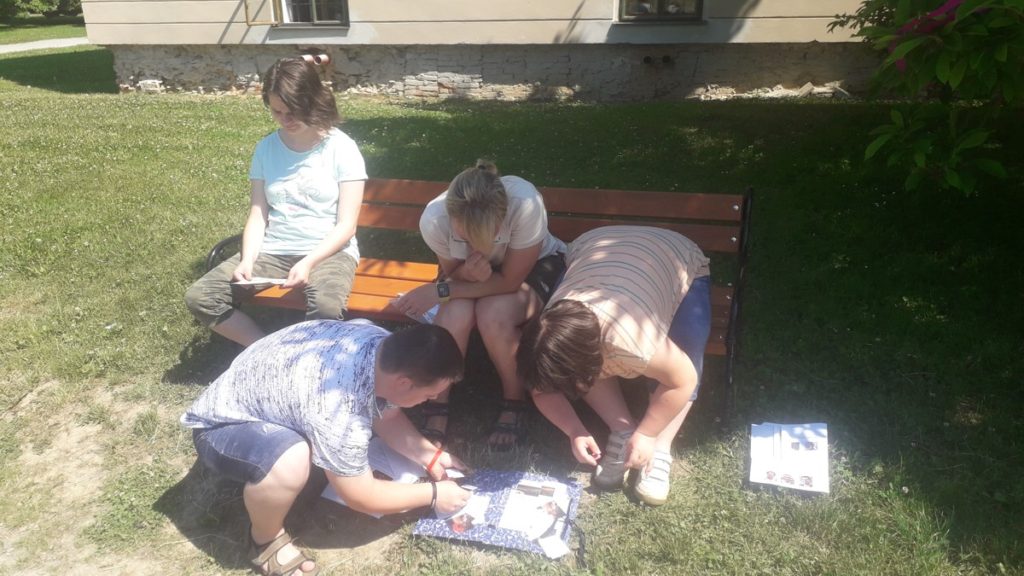 Mezitím některé paní učitelky připravovaly v parku stanoviště, která se týkala informací o zámku Čechy pod Kosířem a jeho okolí a plnění různých úkolů. Po prohlídce muzea se žáci vydali k jednotlivým stanovištím. Skládali obrázky, sbírali Mánesovy vysypané pastelky, hádali, jaké obrázky mohl Josef Mánes nakreslit apod.  Při plnění úkolů si přečetli zajímavosti o zámku a jeho okolí. Za splnění úkolu si žáci vzali vždy jeden díl puzzlí, které měli následně poskládat.  Poté měli hledat poklad. V hledání byli úspěšní.  V truhle našli poukázky na nanuky/ zmrzlinu, kterou si šli následně koupit. Navštívili jsme zámeckou kavárnu, kde jsme se občerstvili.