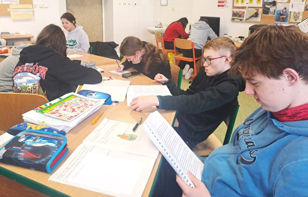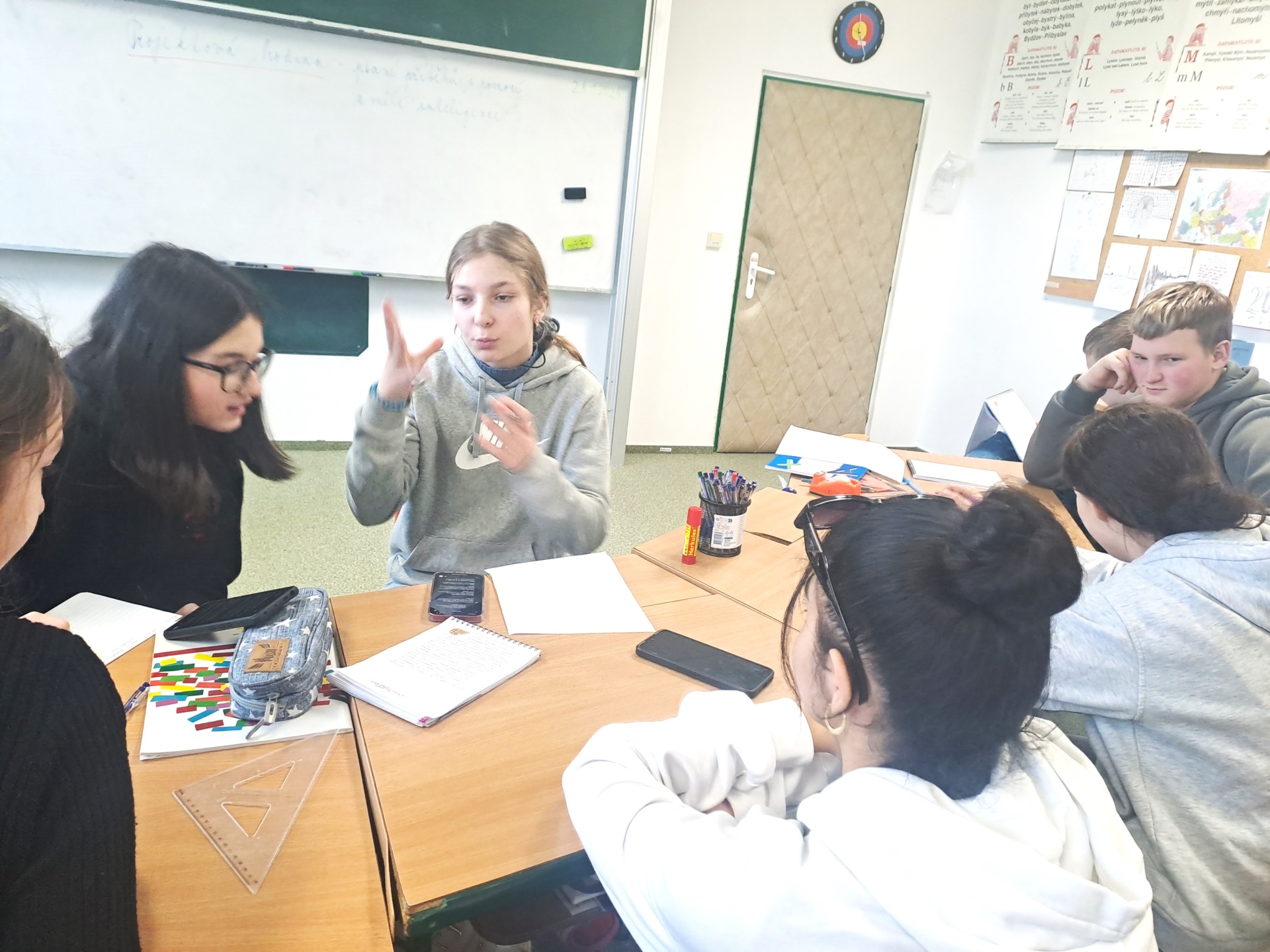 V úterý 28. ledna 2025 se v hodině českého jazyka sešli žáci 9. ročníku s některými žáky z druhého stupně, aby se společně pobavili a naučili pracovat s aplikací umělé inteligence.