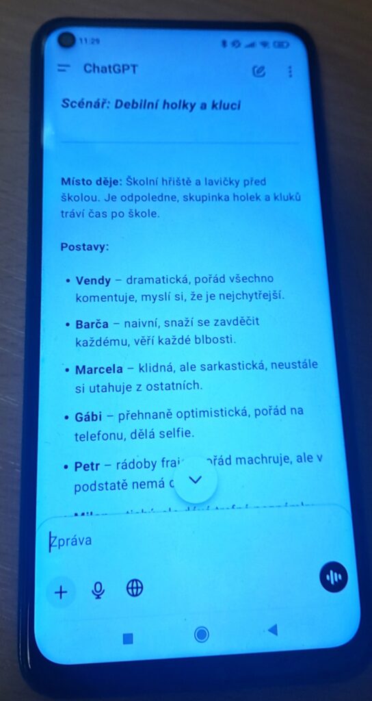 Konkrétně šlo o tvoření příběhů s pomocí AI na zadané téma, se zadanými konkrétními postavami příběhů a vybranými žánry. Lektory byli žáci 9. ročníku, kteří už s tímto psaním mají vlastní zkušenost. Své napsané příběhy ukázali ostatním, naučili je stáhnout si aplikaci do mobilu a vysvětlili jim postup při zadávání úkolu AI.
