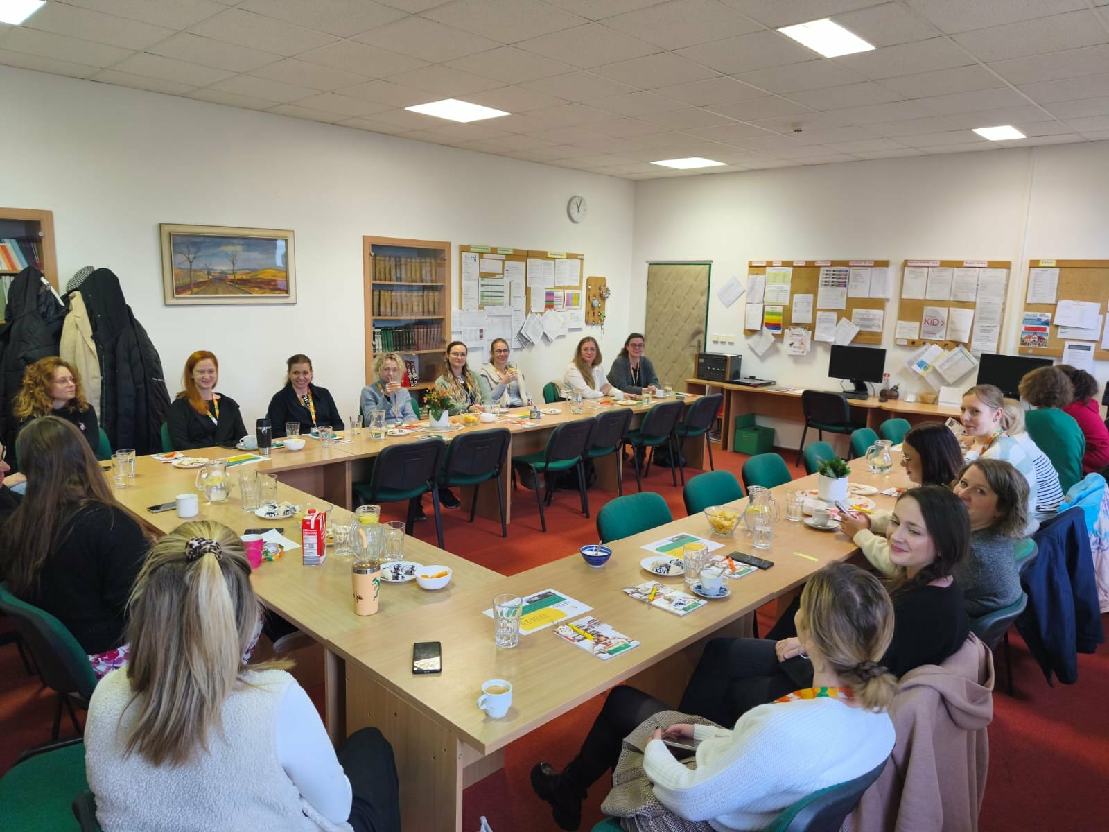 Po praktické části následovala vzájemná diskuse a sdílení informací, během které si pedagogové s poradkyněmi vyměnily poznatky o aktuálních trendech, potřebách dětí a možnostech spolupráce a podpory rodin.