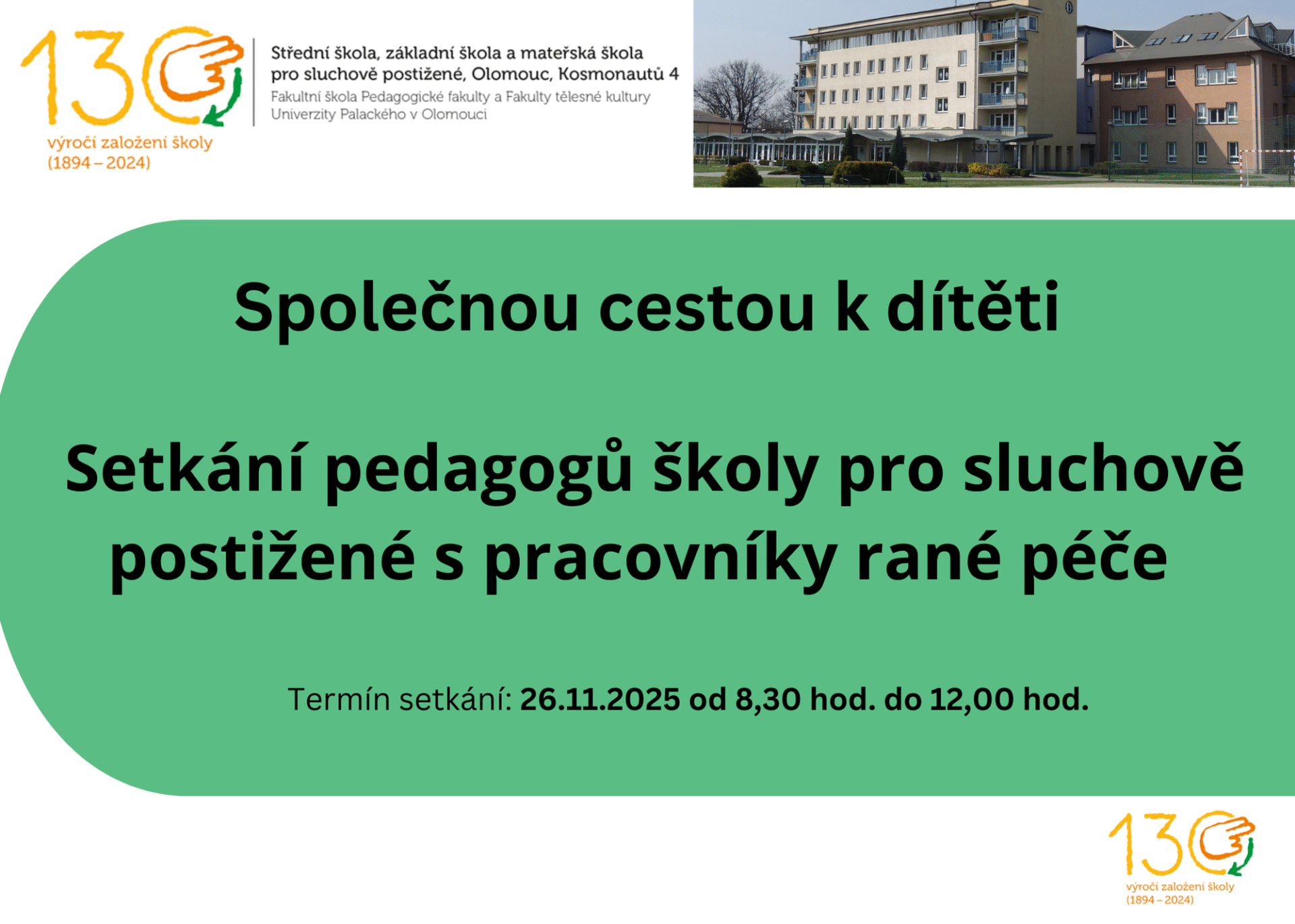 29. 11. 2025Dne 26. listopadu 2025 proběhlo na naší škole setkání pedagogů školy s pracovnicemi rané péče Olomouckého kraje (RP Tamtam, RP JAN, RP Kolpingova rodina Smečno, SPRP pobočka pro zrak, SPRP pobočka pro rodinu).