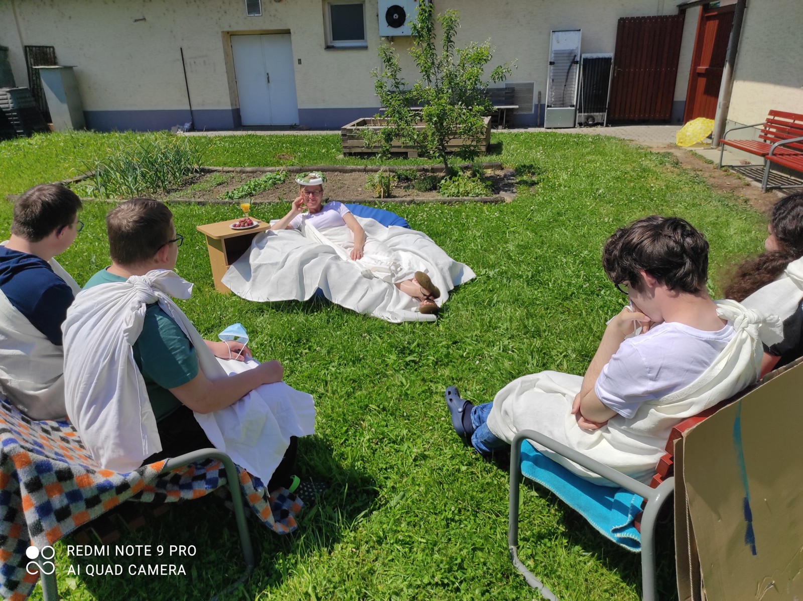 Romulus Augustus nám ukázal své honosné sídlo, uchvátil nás svou mluvou – latinským jazykem, který dnes už známe jen z odborných terminologií. Vzal nás také na trh s otroky, kde jsme se dozvěděli něco o tomto nelehkém “poslání“, neboť otroci nikdy nevěděli, co jejich pána napadne, jaké věci bude muset vykonávat.