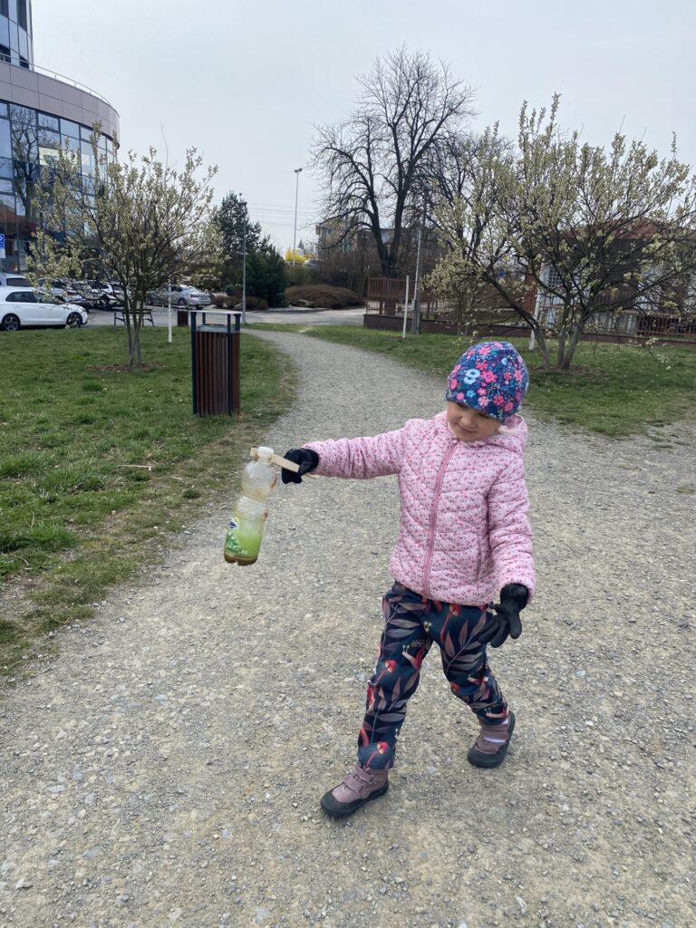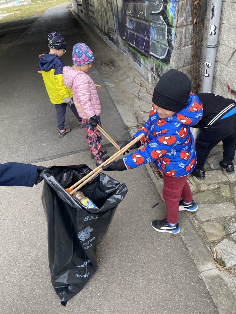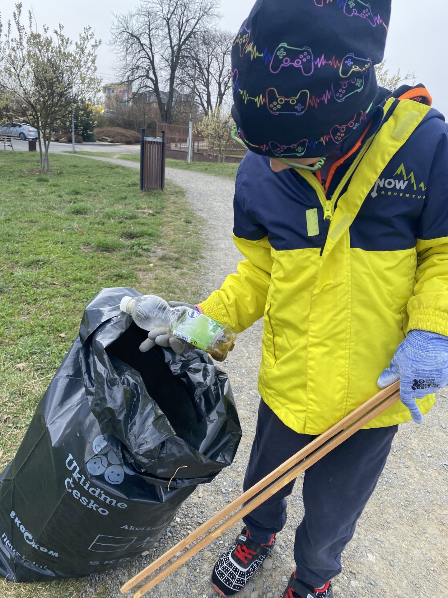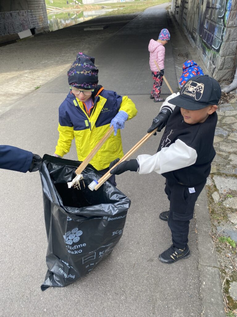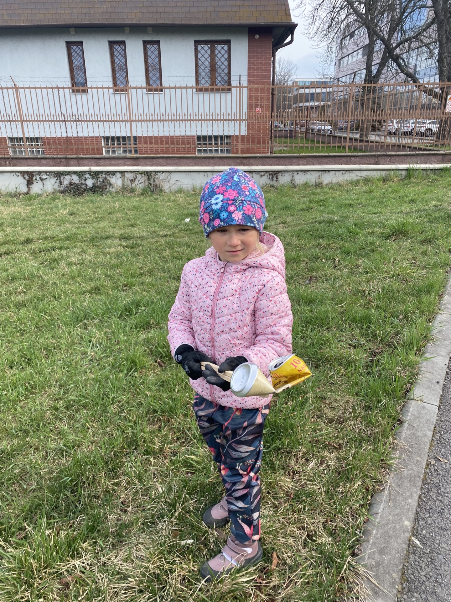 V rámci enviromentální výchovy si s dětmi povídáme o šetrném chování ke svému okolí. Častými tématy se tak stává ochrana rostlin, ochrana a pomoc zvířatům, třídění odpadu a celková ochrana přírody. Koncem března nastaly dny, kdy se společná procházka v okolí školy protentokrát proměnila a cílem se stal sběr odpadu. Jednotlivé třídy obdržely sběrový pytel a každé z dětí obdrželo pracovní rukavice i s kleštěmi na sběr odpadků. Děti neskrývaly své nadšení. Před samotnou akcí jsme si s dětmi připomenuli nejen bezpečné chování, ale také jsme si řekli, který odpad děti sbírat mohou a který ne. Během sběru jsme nacházely nejrůznější věci, od papíru, plastových obalů, krabiček a PET láhví, plechovek, skla až po části různých oděvů. Pytel na odpad se díky dětem rychle plnil a při jeho nesení měly co dělat i tety.