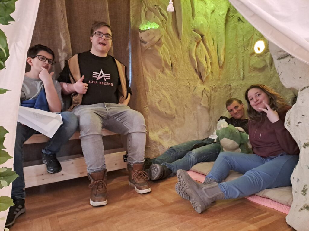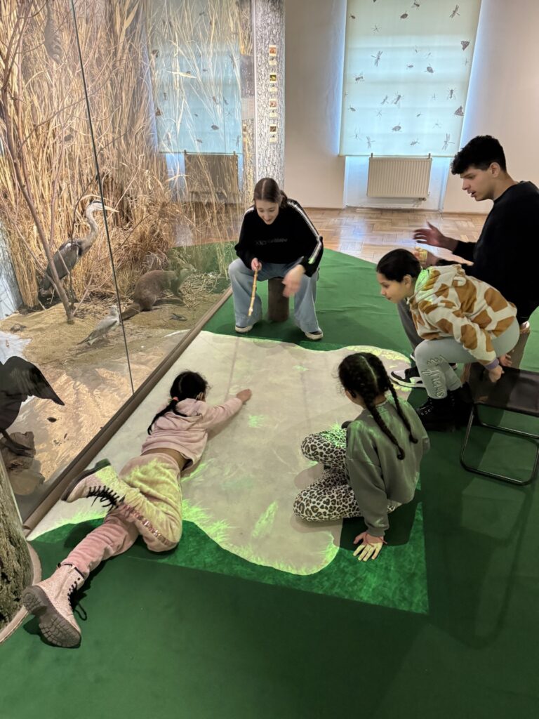 Na konci února jsme se vydali do Vlastivědného muzea, kde velmi rádi trávíme čas v přírodovědné části expozicí. Můžeme si zde zarybařit, poslechnout zvuky zvířat, skládat či kreslit.