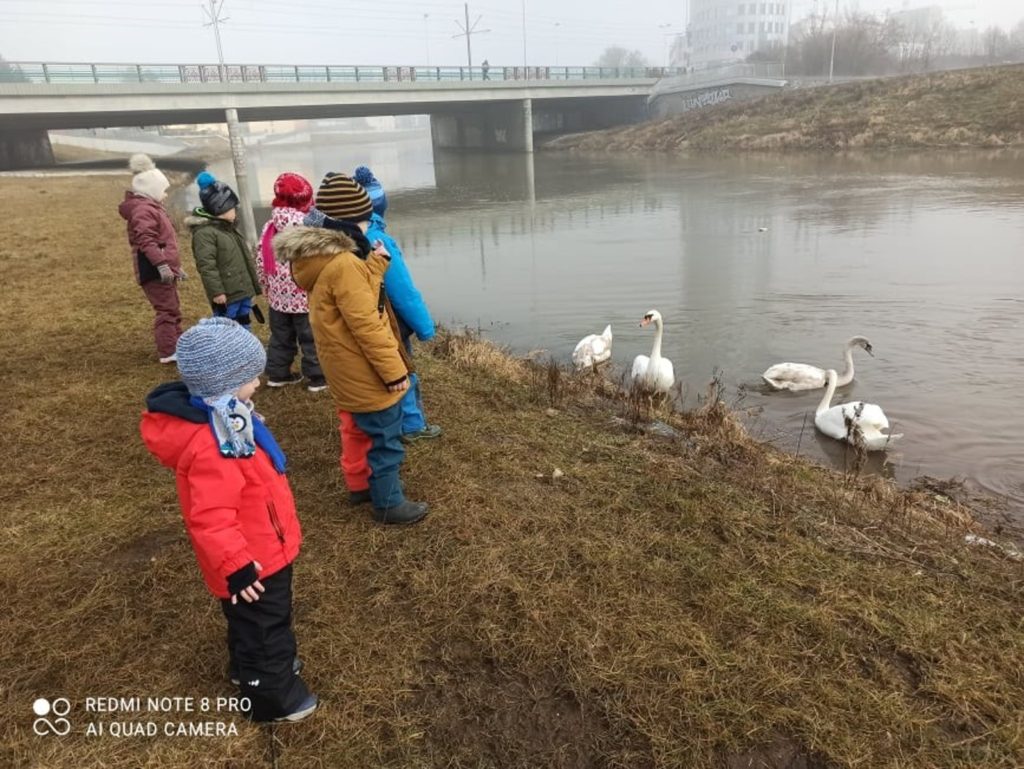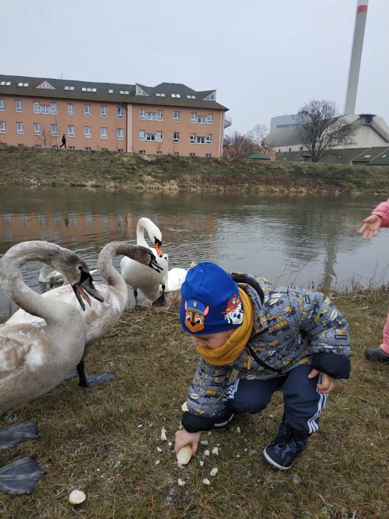 Po celý únor jsme chodili krmit ptáčky a kačeny k řece Moravě. Také labutí rodinka byla velikým a exkluzivním lákadlem.