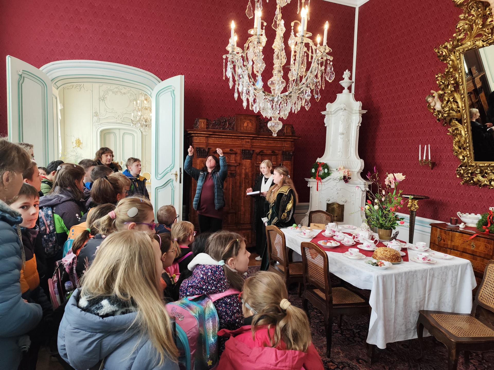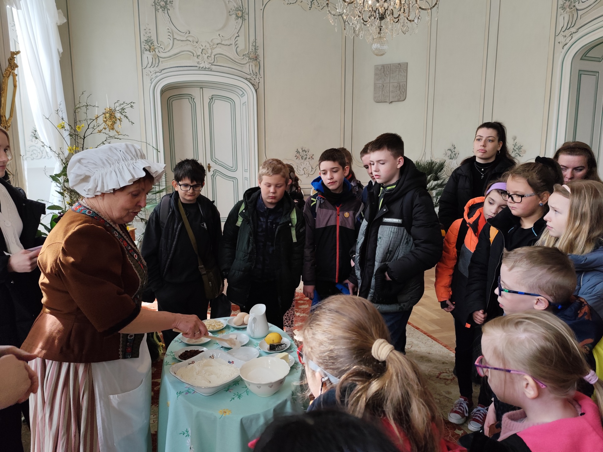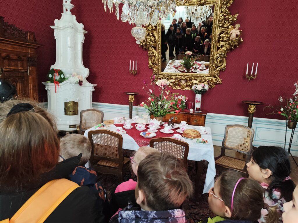 Žáci se ve velikonočně vyzdobeném zámku seznámili s mnoha velikonočními zvyky, zhlédli kousek pohádky Honza málem králem a v dílničce si každý vyrobil krásné kuřátko ze šišky. Nakonec si děti mohly na jarmarku zakoupit drobnosti na památku.