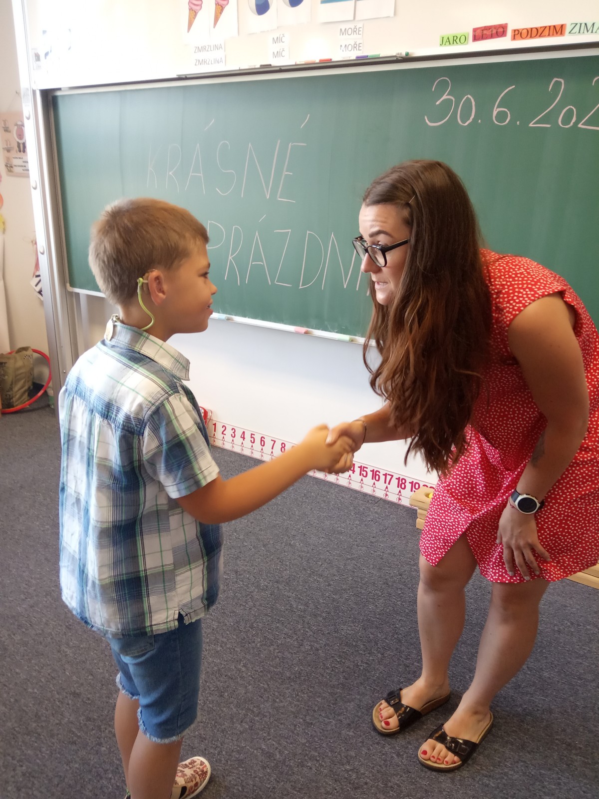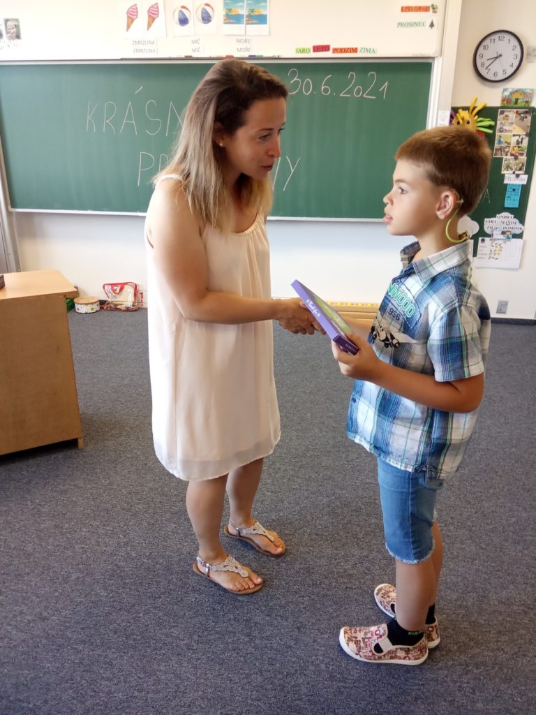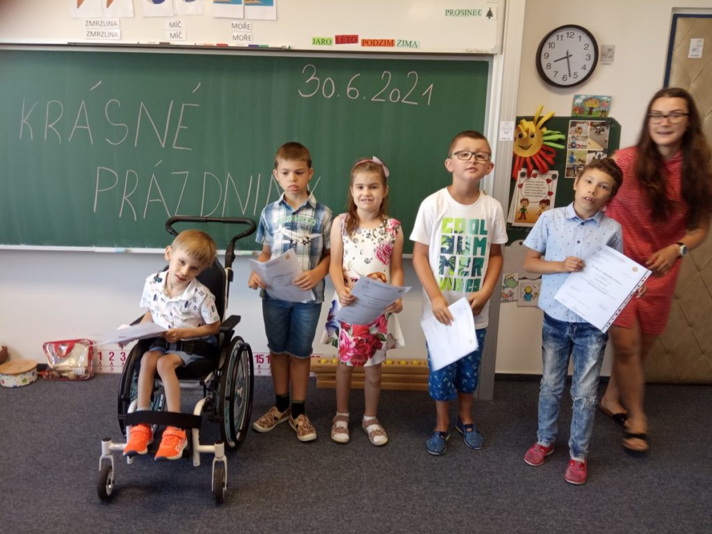 03. 07. 2021Po celoroční práci, snažení se a mnoho krásných zážitcích, jsem mohla předat svým prvňáčkům jejich první „velké“ vysvědčení. Už od rána jim oči „svítily“ nadšením. Těšili se na svůj velký nezapomenutelný den. S radostí a úsměvem na tváři si chodili pro ten „magický“ list. Popřáli jsme si krásné prázdniny a „hurá“ na prázdniny. Všichni se těšíme na další společný školní rok, protože nás opět čeká spoustu hezkých zážitků. „Ahoj“ po prázdninách.